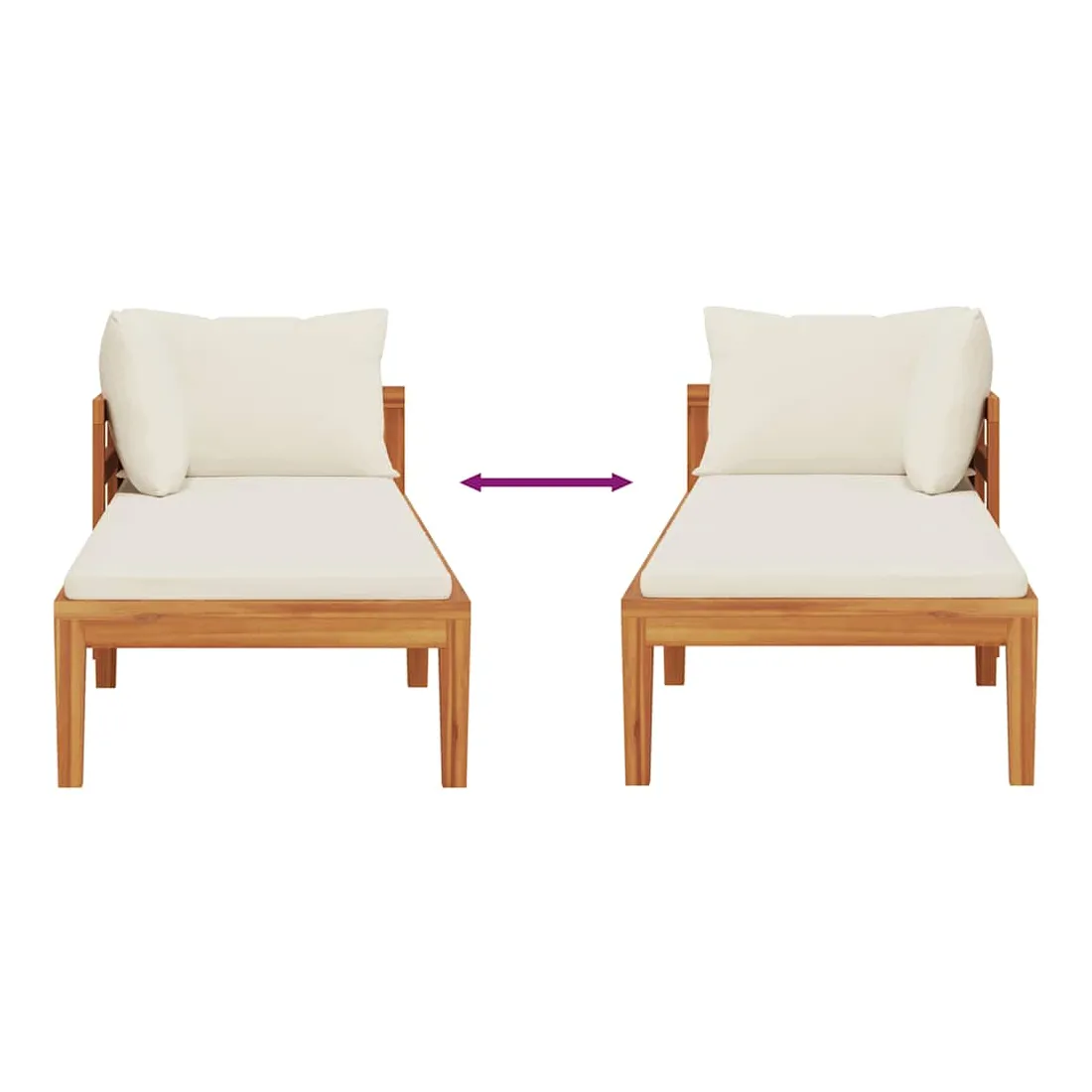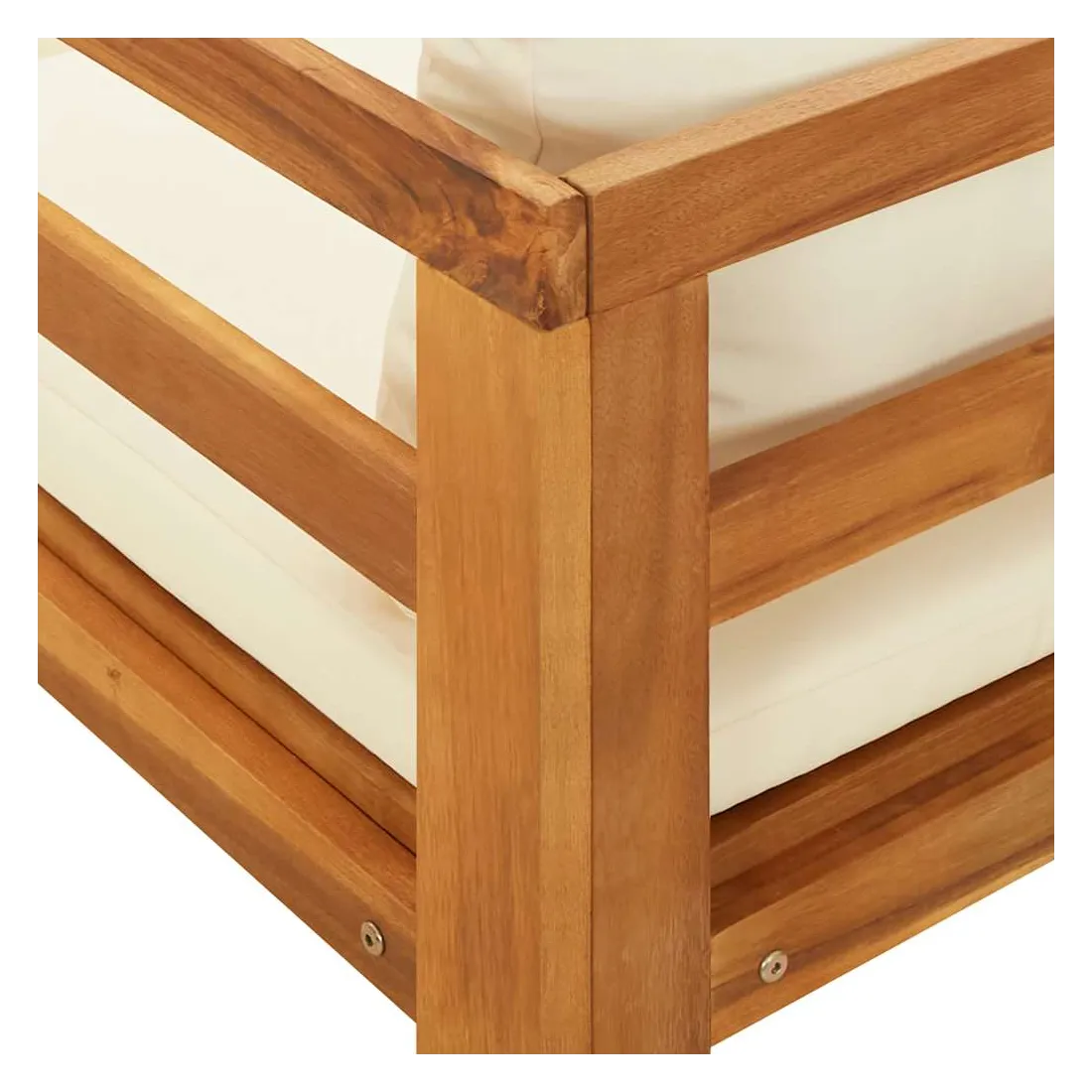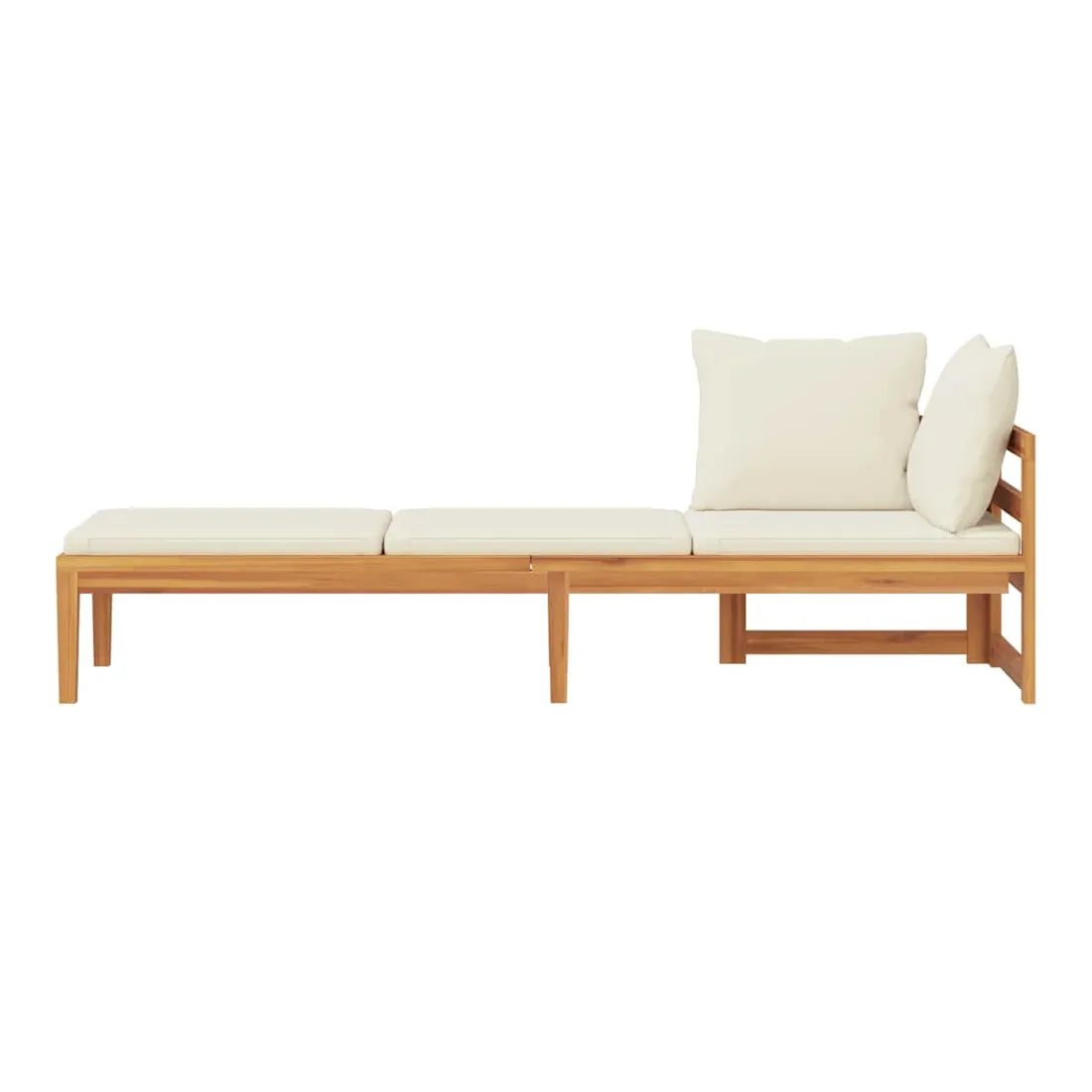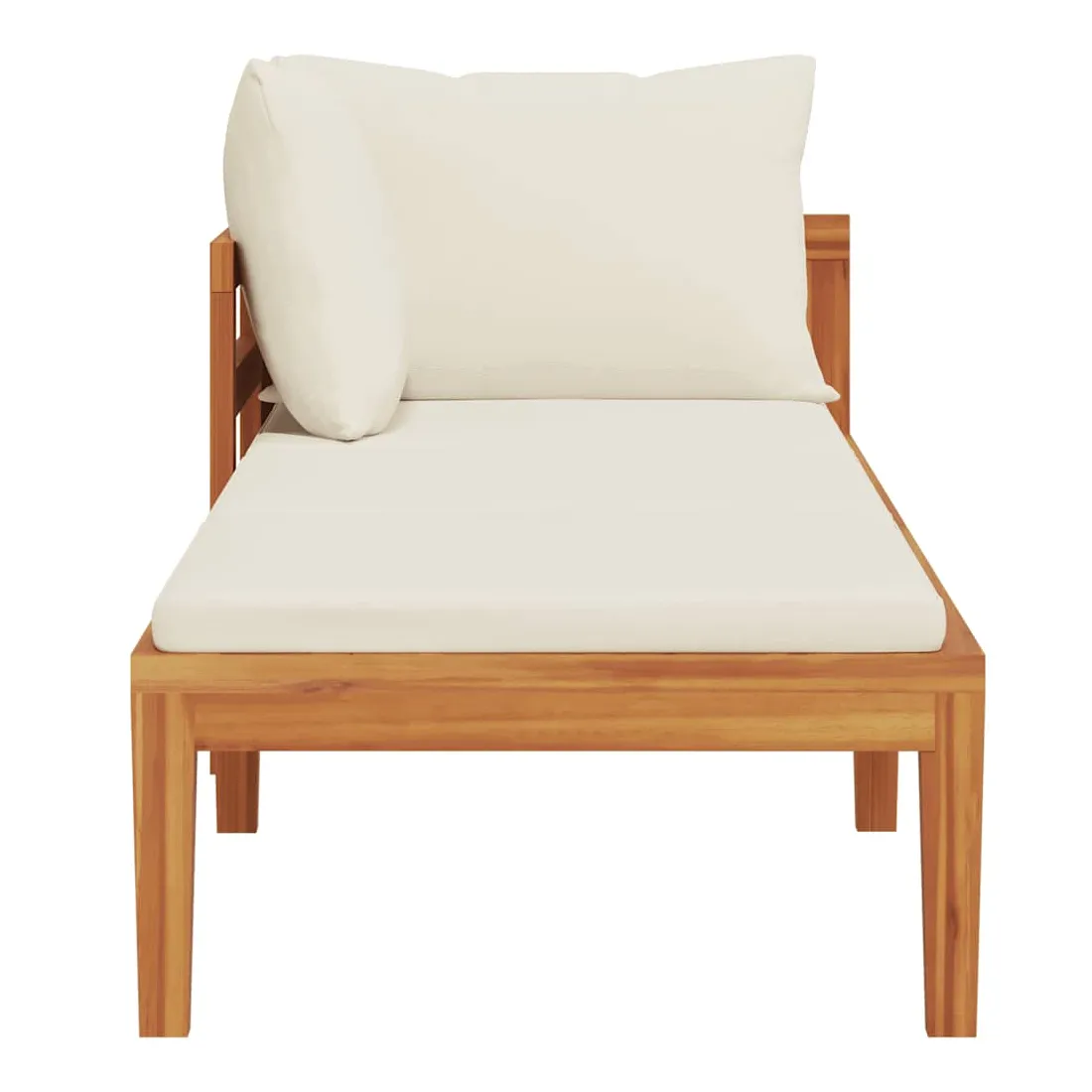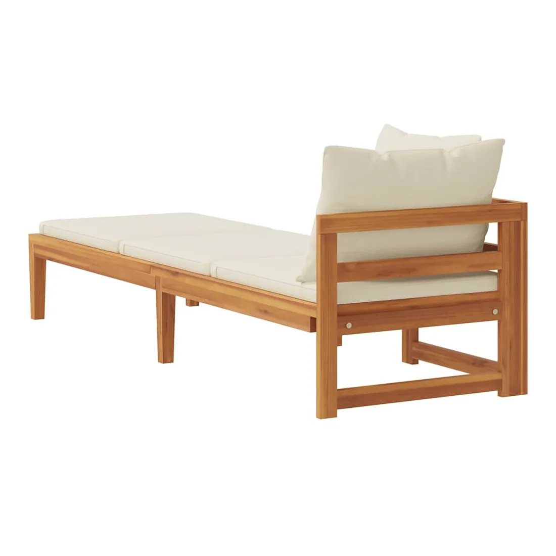 Profitez d’un moment de détente agréable avec vos amis ou votre famille dans l’espace d'extérieur sur cette chaise longue en bois ! Cette chaise longue de jardin est fabriquée en bois d'acacia massif, un bois dur aux grains denses. Ce transat d'extérieur magnifiquement conçu est stable, durable et accrocheur. De plus, le savoir-faire exquis et les beaux grains de bois rendent chaque pièce légèrement différente l'une de l'autre. Les coussins inclus ajoutent plus de confort au repos. De plus, l'accoudoir peut être monté à gauche ou à droite. Remarque : afin de prolonger la durée de vie de vos meubles d'extérieur, nous vous recommandons de les nettoyer régulièrement et de ne pas les laisser à l'extérieur sans protection inutilement.Nettoyage : Utiliser une solution savonneuse douce.Stockage : si possible, stockez dans un endroit frais et sec à l'intérieur. Si le produit est stocké à l'extérieur, protégez-le avec une housse imperméable. Essuyez et séchez l'excès d'eau ou de neige des surfaces planes après la pluie ou une chute de neige. Permettez une circulation d'air suffisante afin d'éviter les dommages liés à l'humidité.