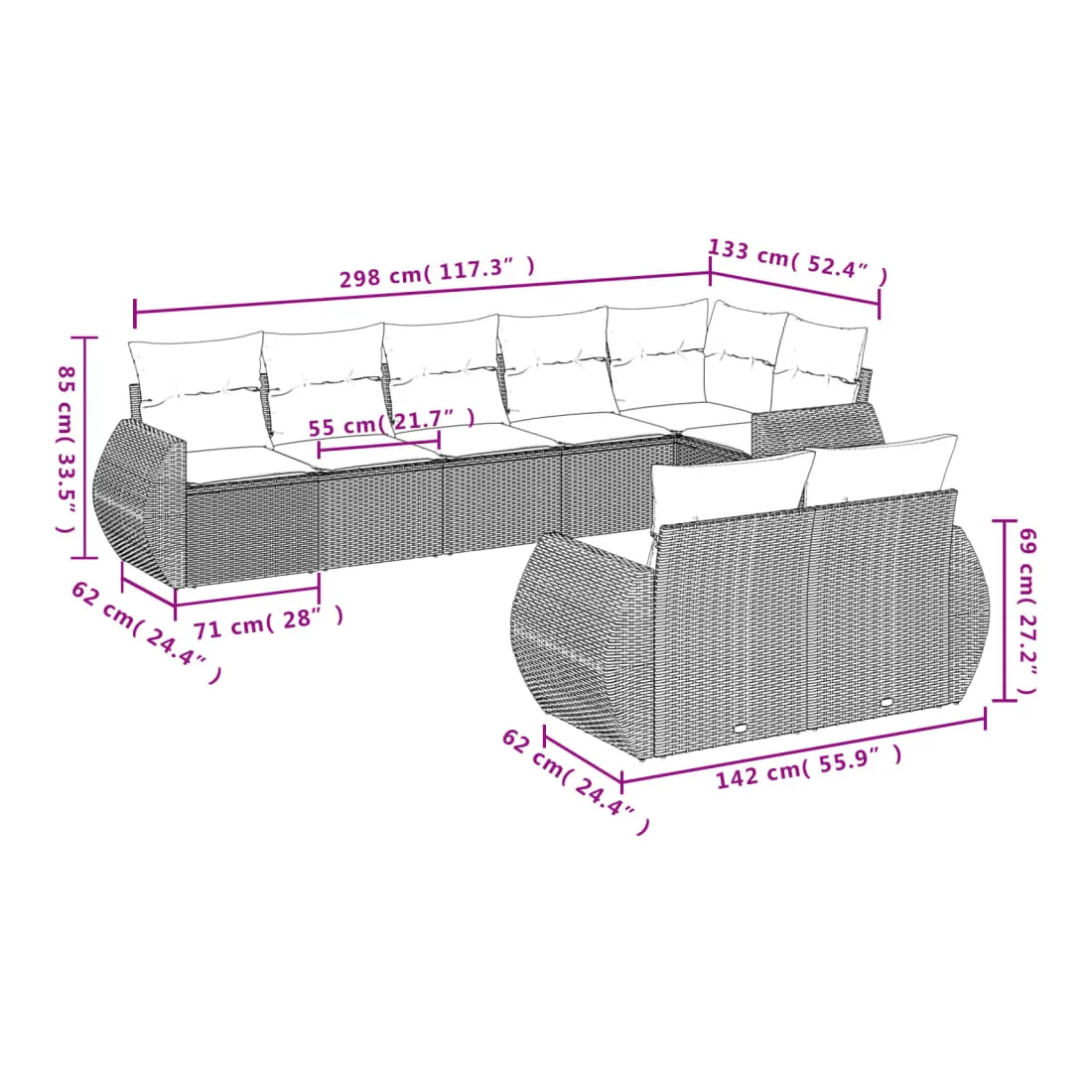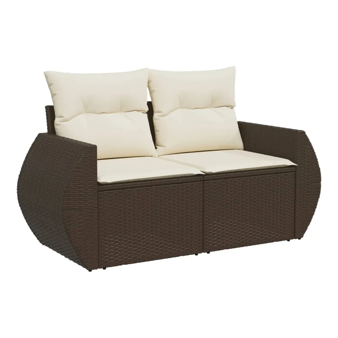 Salon de jardin 8 pcs avec coussins marron résine tressée