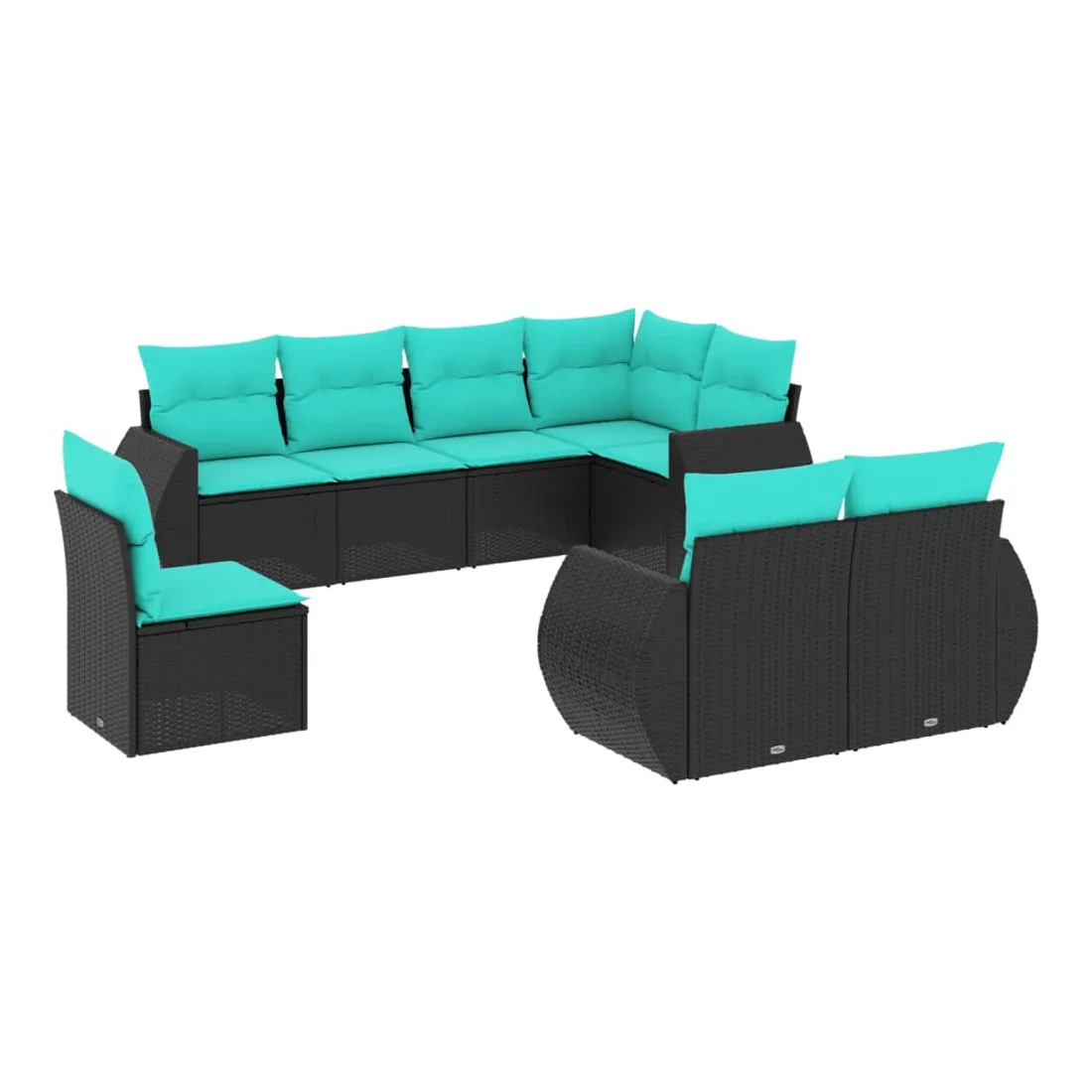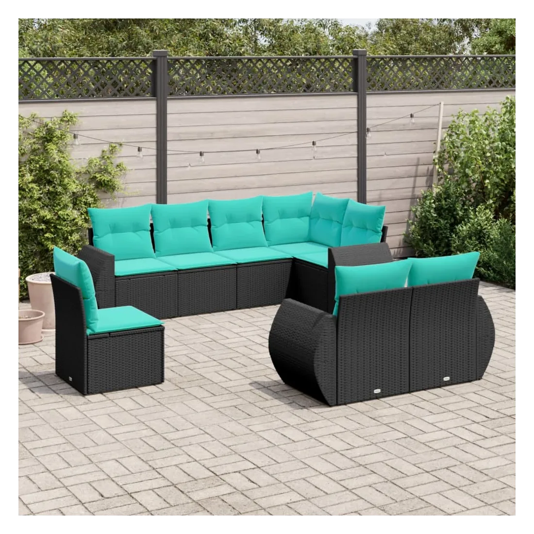 Salon de jardin 8 pcs avec coussins noir résine tressée
