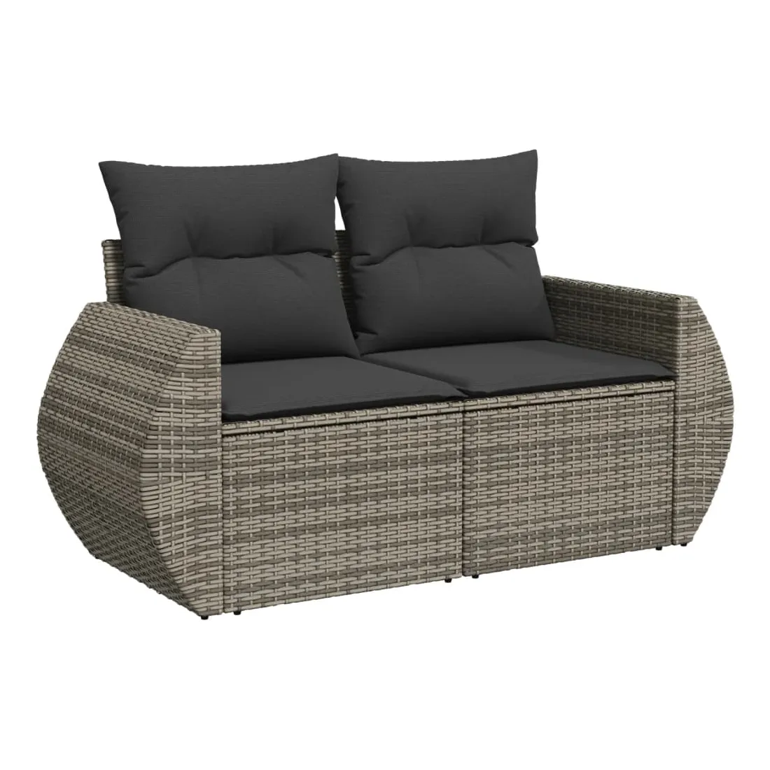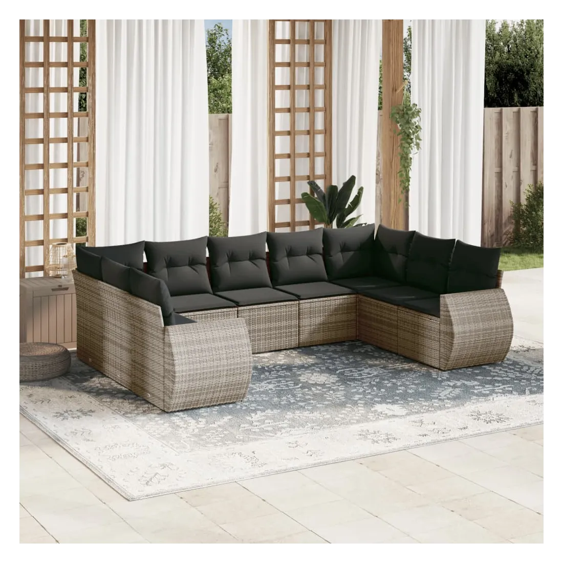 Salon de jardin 9 pcs avec coussins gris résine tressée