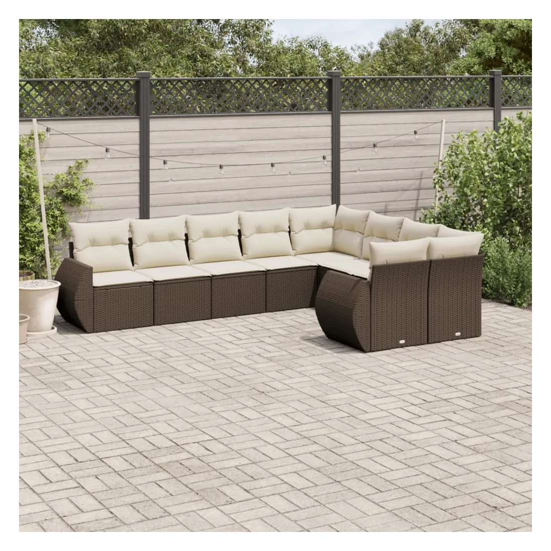 Salon de jardin avec coussins 9 pcs marron résine tressée