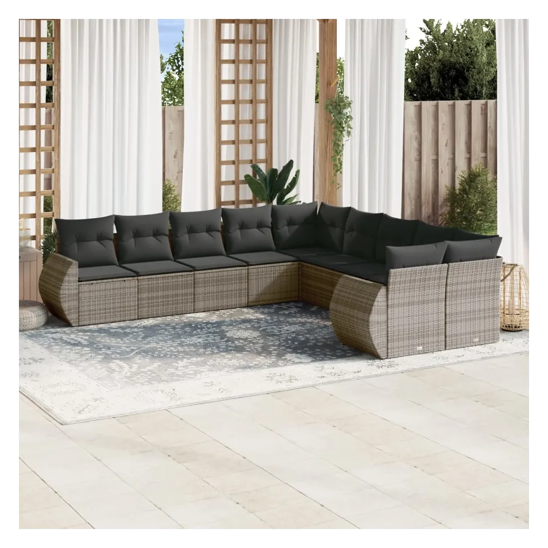 Cet ensemble de canapés de jardin est le complément parfait de votre arrière-cour, terrasse ou patio, offrant un espace confortable et accueillant pour discuter avec la famille et les amis ou simplement se détendre et profiter de l'extérieur. Matériau durable : la résine tressée, également connue sous le nom de poly rotin, est un matériau synthétique solide et nécessitant peu d'entretien qui ressemble au rotin naturel. Il est léger, facile à nettoyer et couramment utilisé pour les meubles d'extérieur en raison de sa durabilité et de ses propriétés de résistance aux intempéries.Expérience d'assise confortable : ce mobilier d'extérieur, doté de coussins épais, offre une expérience d'assise confortable.Housse amovible et lavable : ces coussins de siège sont dotés de housses amovibles pour un lavage et un entretien faciles.Conception modulaire : cet ensemble de meubles d'extérieur a une conception modulaire, ce qui le rend complètement flexible et facile à déplacer, afin que vous puissiez créer un agencement de meubles d'extérieur personnalisé. Bon à savoir :Pour que vos meubles d'extérieur restent beaux, nous vous recommandons de les protéger avec une housse imperméable.