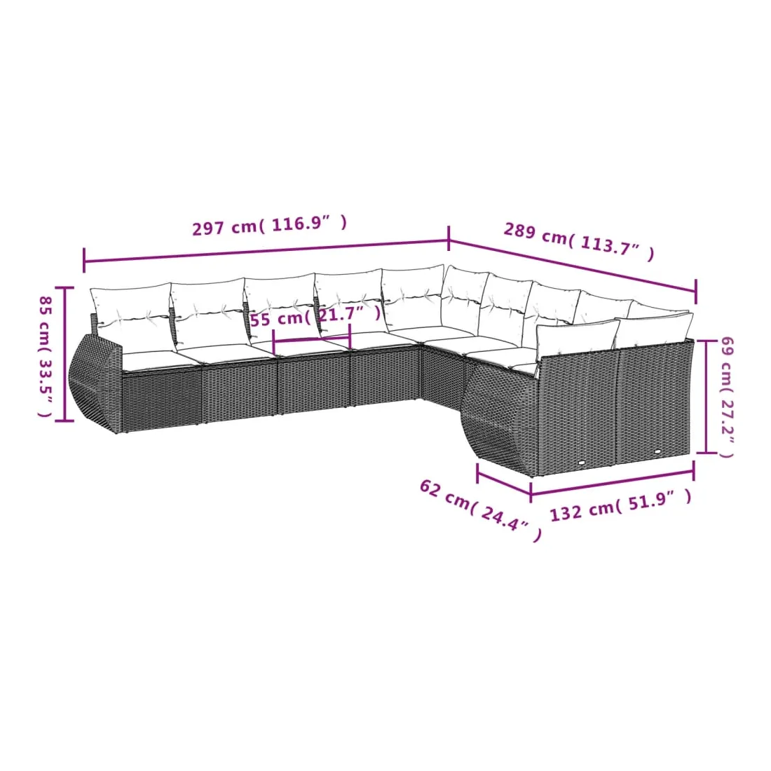 - Dimensions du coussin de dossier : 55 x 45 x 13 cm (L x l x é)
