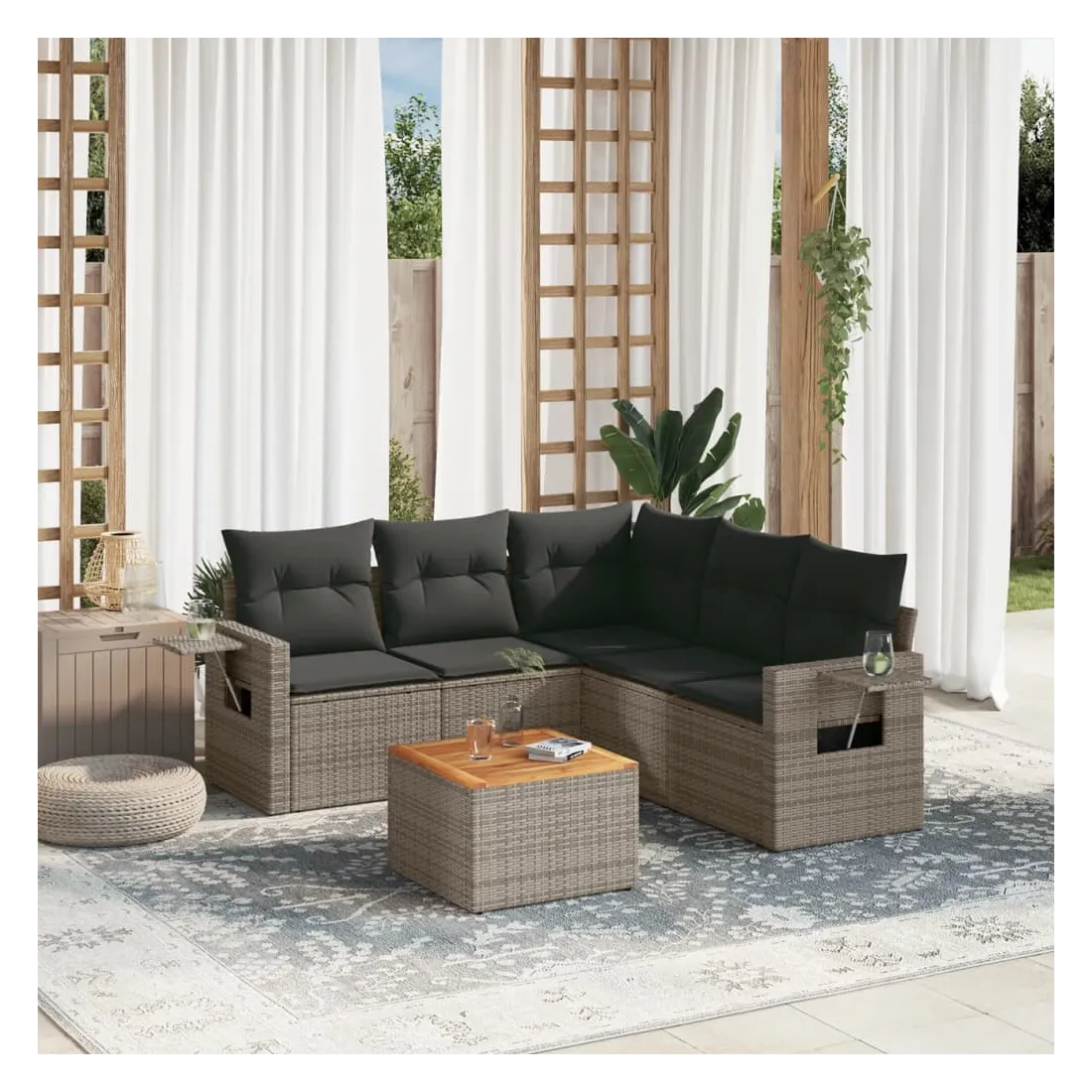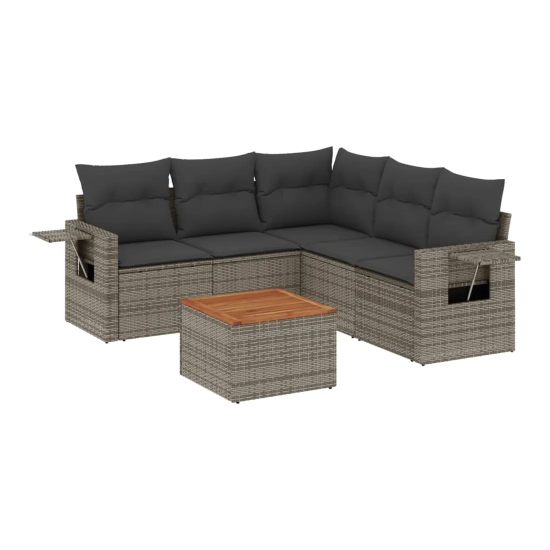 Salon de jardin 6 pcs avec coussins gris résine tressée