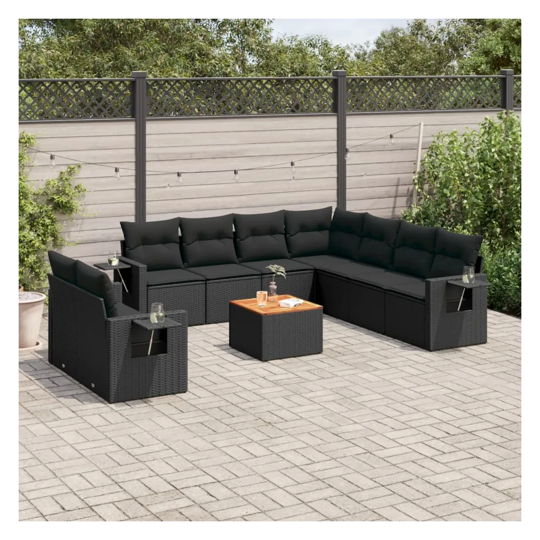 Cet ensemble de canapés de jardin est le complément parfait de votre arrière-cour, terrasse ou patio, offrant un espace confortable et accueillant pour discuter avec la famille et les amis ou simplement se détendre et profiter de l'extérieur. Matériau durable : la résine tressée, également connue sous le nom de poly rotin, est un matériau synthétique solide et nécessitant peu d'entretien qui ressemble au rotin naturel. Il est léger, facile à nettoyer et couramment utilisé pour les meubles d'extérieur en raison de sa durabilité et de ses propriétés de résistance aux intempéries.Table d'appoint pratique : ce mobilier d'extérieur comprend une table d'appoint pliable avec un ressort à gaz sur les accoudoirs, offrant un endroit pratique pour garder vos essentiels à portée de main.Dessus stable et facile à nettoyer : cette table de jardin a un dessus en bois d'acacia robuste, durable et facile à nettoyer avec un chiffon humide.Housse amovible et lavable : ces coussins de siège sont dotés de housses amovibles pour un lavage et un entretien faciles.Conception modulaire : cet ensemble de meubles d'extérieur a une conception modulaire, ce qui le rend complètement flexible et facile à déplacer, afin que vous puissiez créer un agencement de meubles d'extérieur personnalisé. Bon à savoir :Pour que vos meubles d'extérieur restent beaux, nous vous recommandons de les protéger avec une housse imperméable.