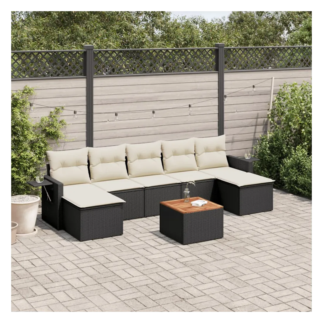 Cet ensemble de canapés de jardin est le complément parfait de votre arrière-cour, terrasse ou patio, offrant un espace confortable et accueillant pour discuter avec la famille et les amis ou simplement se détendre et profiter de l'extérieur. Matériau durable : la résine tressée, également connue sous le nom de poly rotin, est un matériau synthétique solide et nécessitant peu d'entretien qui ressemble au rotin naturel. Il est léger, facile à nettoyer et couramment utilisé pour les meubles d'extérieur en raison de sa durabilité et de ses propriétés de résistance aux intempéries.Table d'appoint pratique : ce mobilier d'extérieur comprend une table d'appoint pliable avec un ressort à gaz sur les accoudoirs, offrant un endroit pratique pour garder vos essentiels à portée de main.Dessus stable et facile à nettoyer : cette table de jardin a un dessus en bois d'acacia robuste, durable et facile à nettoyer avec un chiffon humide.Housse amovible et lavable : ces coussins de siège sont dotés de housses amovibles pour un lavage et un entretien faciles.Conception modulaire : cet ensemble de meubles d'extérieur a une conception modulaire, ce qui le rend complètement flexible et facile à déplacer, afin que vous puissiez créer un agencement de meubles d'extérieur personnalisé. Bon à savoir :Pour que vos meubles d'extérieur restent beaux, nous vous recommandons de les protéger avec une housse imperméable.