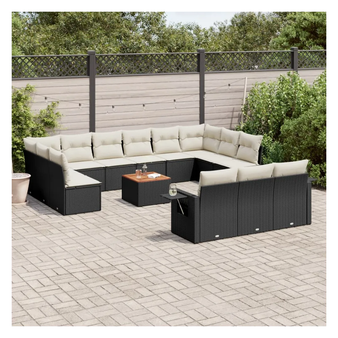 Cet ensemble de canapés de jardin est le complément parfait de votre arrière-cour, terrasse ou patio, offrant un espace confortable et accueillant pour discuter avec la famille et les amis ou simplement se détendre et profiter de l'extérieur. Matériau durable : la résine tressée, également connue sous le nom de poly rotin, est un matériau synthétique solide et nécessitant peu d'entretien qui ressemble au rotin naturel. Il est léger, facile à nettoyer et couramment utilisé pour les meubles d'extérieur en raison de sa durabilité et de ses propriétés de résistance aux intempéries.Table d'appoint pratique : ce mobilier d'extérieur comprend une table d'appoint pliable avec un ressort à gaz sur les accoudoirs, offrant un endroit pratique pour garder vos essentiels à portée de main.Dessus stable et facile à nettoyer : cette table de jardin a un dessus en bois d'acacia robuste, durable et facile à nettoyer avec un chiffon humide.Housse amovible et lavable : ces coussins de siège sont dotés de housses amovibles pour un lavage et un entretien faciles.Conception modulaire : cet ensemble de meubles d'extérieur a une conception modulaire, ce qui le rend complètement flexible et facile à déplacer, afin que vous puissiez créer un agencement de meubles d'extérieur personnalisé. Bon à savoir :Pour que vos meubles d'extérieur restent beaux, nous vous recommandons de les protéger avec une housse imperméable.