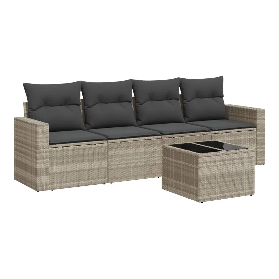 Cet ensemble de canapés de jardin est le complément parfait de votre arrière-cour, terrasse ou patio, offrant un espace confortable et accueillant pour discuter avec la famille et les amis ou simplement se détendre et profiter de l'extérieur. Matériau durable : la résine tressée, également connue sous le nom de poly rotin, est un matériau synthétique solide et nécessitant peu d'entretien qui ressemble au rotin naturel. Il est léger, facile à nettoyer et couramment utilisé pour les meubles d'extérieur en raison de sa durabilité et de ses propriétés de résistance aux intempéries.Fonction de rangement avec sac résistant à l'eau : chaque siège de jardin dispose d'un espace de rangement sous l'assise, complété par un sac résistant à l'eau pour ranger les coussins, les jouets et d'autres objets. Les sacs intérieurs sont dotés d'un couvercle et peuvent être solidement fixés aux sièges à l'aide de bandes auto-agrippantes pour plus de stabilité.Dessus en verre : le dessus de la table d'extérieur est fabriqué en verre trempé solide et durable, ce qui le rend facile à nettoyer avec un chiffon humide et ajoute une touche d'élégance à votre espace extérieur.Housse amovible et lavable : ces coussins de siège sont dotés de housses amovibles pour un lavage et un entretien faciles.Conception modulaire : cet ensemble de meubles d'extérieur a une conception modulaire, ce qui le rend complètement flexible et facile à déplacer, afin que vous puissiez créer un agencement de meubles d'extérieur personnalisé. Bon à savoir :Pour que vos meubles d'extérieur restent beaux, nous vous recommandons de les protéger avec une housse imperméable.