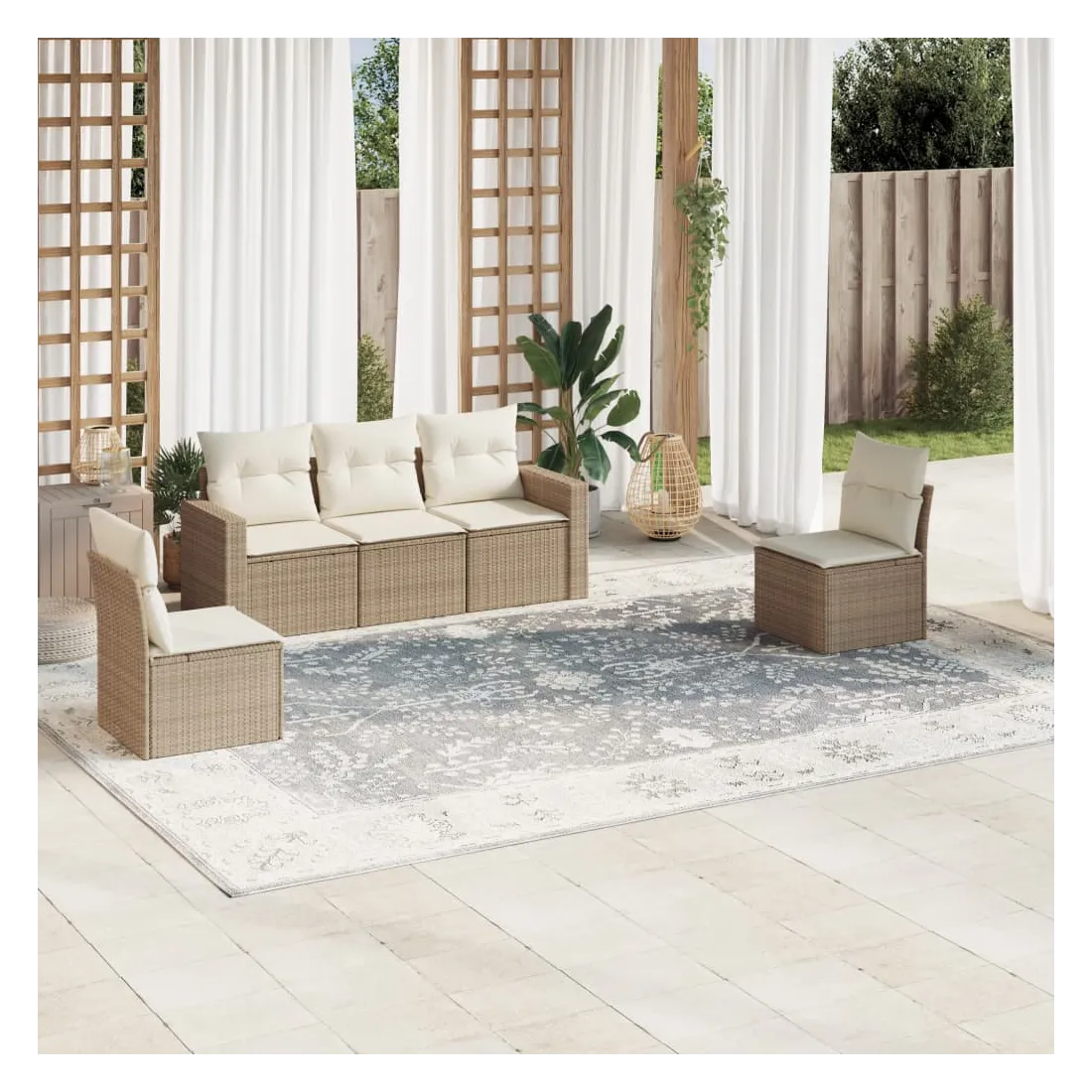 Cet ensemble de canapés de jardin est le complément parfait de votre arrière-cour, terrasse ou patio, offrant un espace confortable et accueillant pour discuter avec la famille et les amis ou simplement se détendre et profiter de l'extérieur. Matériau durable : la résine tressée, également connue sous le nom de poly rotin, est un matériau synthétique solide et nécessitant peu d'entretien qui ressemble au rotin naturel. Il est léger, facile à nettoyer et couramment utilisé pour les meubles d'extérieur en raison de sa durabilité et de ses propriétés de résistance aux intempéries.Fonction de rangement avec sac résistant à l'eau : chaque siège de jardin dispose d'un espace de rangement sous l'assise, complété par un sac résistant à l'eau pour ranger les coussins, les jouets et d'autres objets. Les sacs intérieurs sont dotés d'un couvercle et peuvent être solidement fixés aux sièges à l'aide de bandes auto-agrippantes pour plus de stabilité.Expérience d'assise confortable : ce mobilier d'extérieur, doté de coussins épais, offre une expérience d'assise confortable.Housse amovible et lavable : ces coussins de siège sont dotés de housses amovibles pour un lavage et un entretien faciles.Conception modulaire : cet ensemble de meubles d'extérieur a une conception modulaire, ce qui le rend complètement flexible et facile à déplacer, afin que vous puissiez créer un agencement de meubles d'extérieur personnalisé. Bon à savoir :Pour que vos meubles d'extérieur restent beaux, nous vous recommandons de les protéger avec une housse imperméable.