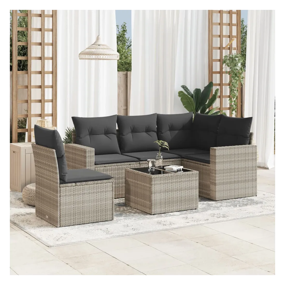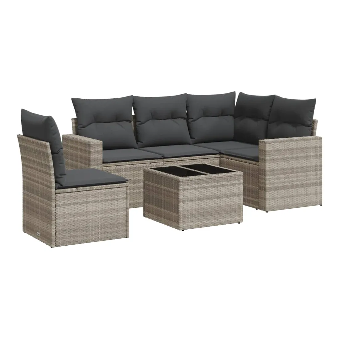Salon de jardin 6 pcs avec coussins gris clair résine tressée
