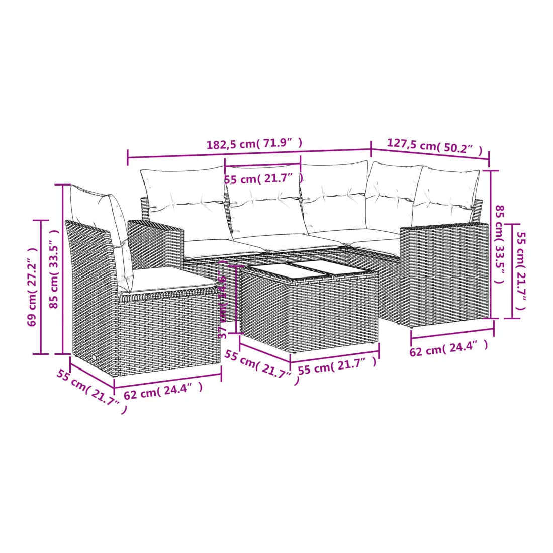 • Dimensions : 55 x 55 x 37 cm (L x l x H)