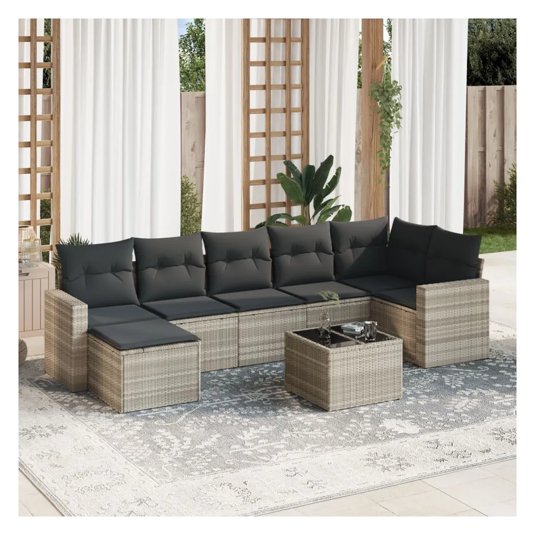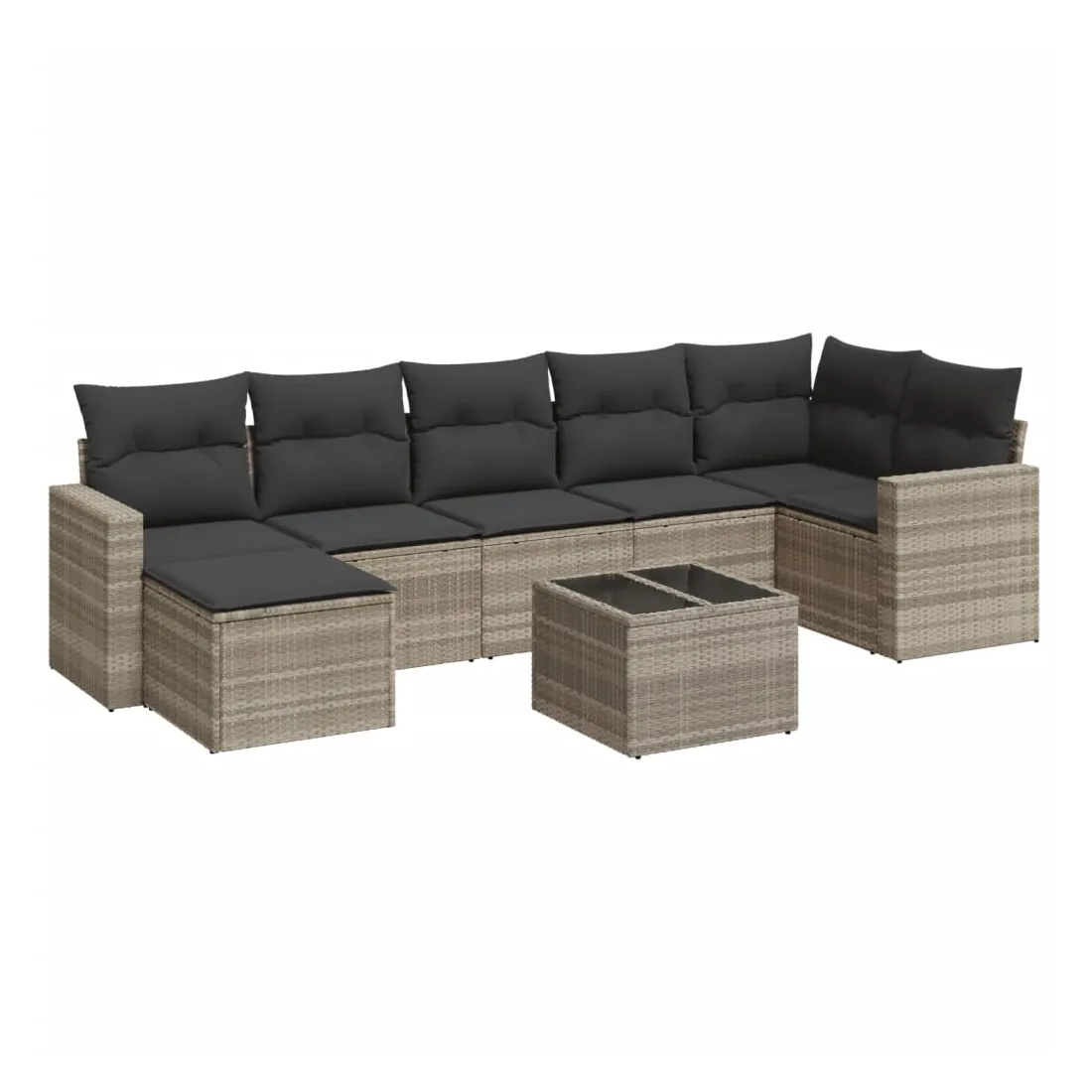 Salon de jardin 8 pcs avec coussins gris clair résine tressée