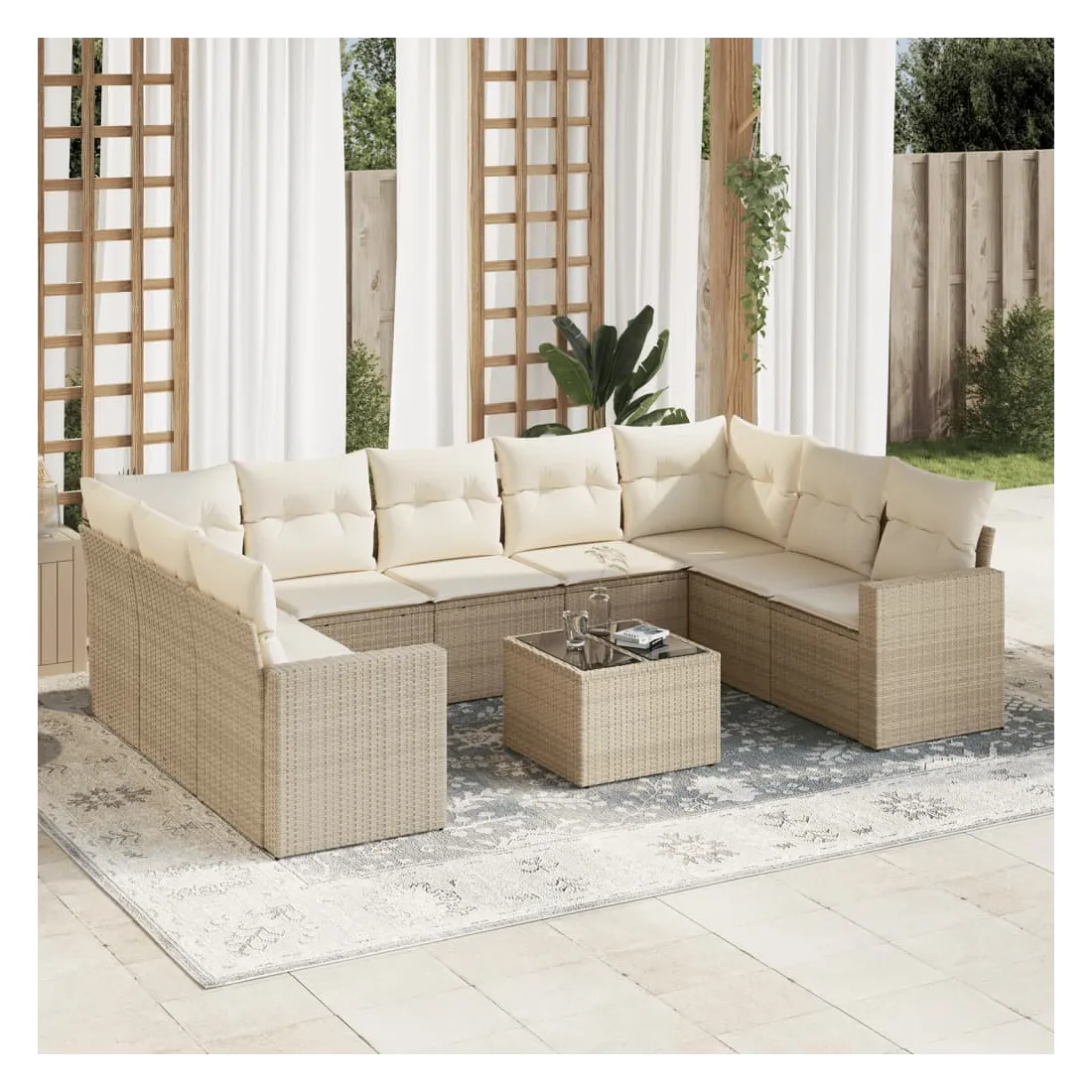 Salon de jardin avec coussins 10 pcs beige résine tressée