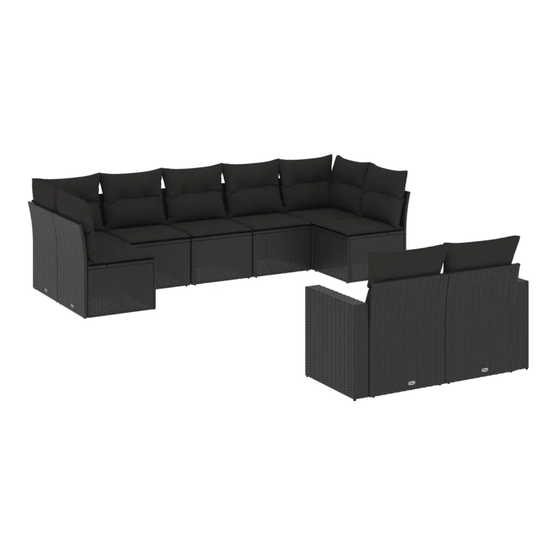 Salon de jardin 9 pcs avec coussins noir résine tressée