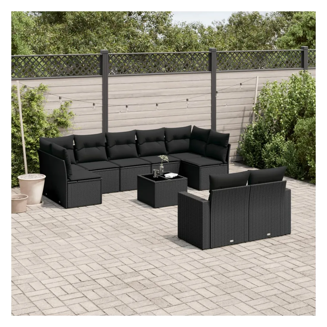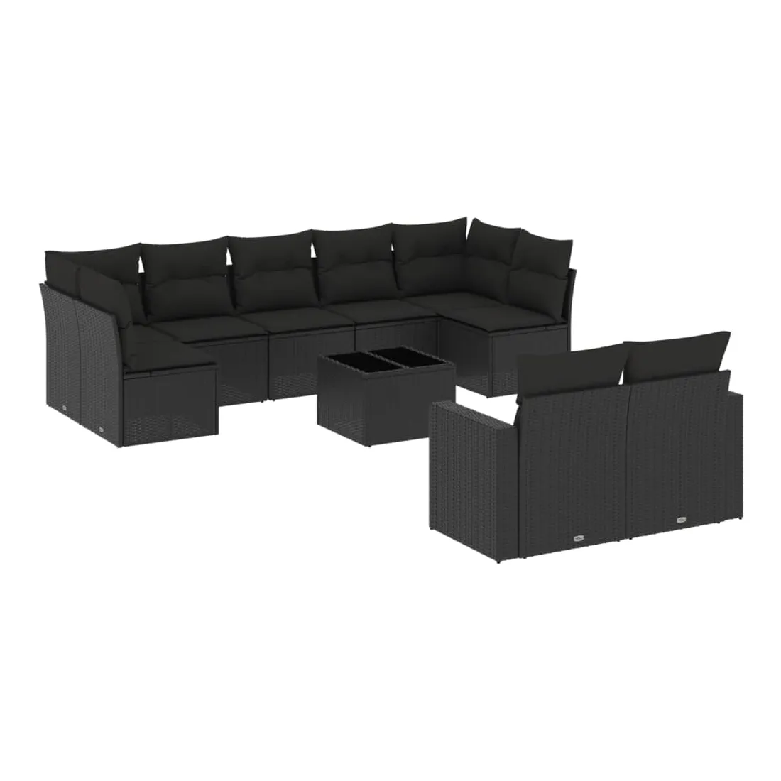 Salon de jardin 10 pcs avec coussins noir résine tressée