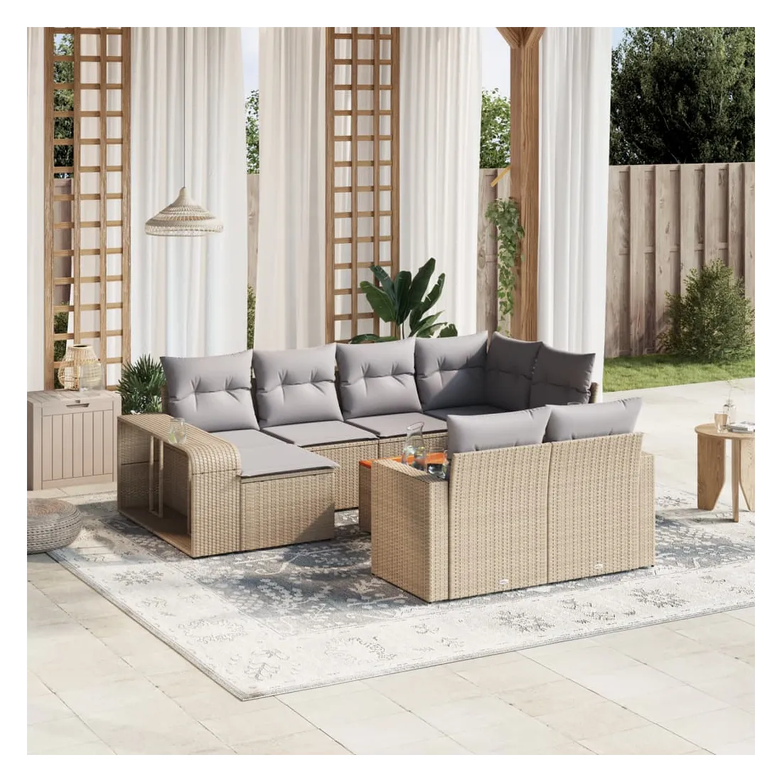 Cet ensemble de canapés de jardin est le complément parfait de votre arrière-cour, terrasse ou patio, offrant un espace confortable et accueillant pour discuter avec la famille et les amis ou simplement se détendre et profiter de l'extérieur. Matériau durable : la résine tressée, également connue sous le nom de poly rotin, est un matériau synthétique solide et nécessitant peu d'entretien qui ressemble au rotin naturel. Il est léger, facile à nettoyer et couramment utilisé pour les meubles d'extérieur en raison de sa durabilité et de ses propriétés de résistance aux intempéries.Fonction de rangement avec sac résistant à l'eau : chaque siège de jardin dispose d'un espace de rangement sous l'assise, complété par un sac résistant à l'eau pour ranger les coussins, les jouets et d'autres objets. Les sacs intérieurs sont dotés d'un couvercle et peuvent être solidement fixés aux sièges à l'aide de bandes auto-agrippantes pour plus de stabilité.Dessus stable et facile à nettoyer : cette table de jardin a un dessus en bois d'acacia robuste, durable et facile à nettoyer avec un chiffon humide.Housse amovible et lavable : ces coussins de siège sont dotés de housses amovibles pour un lavage et un entretien faciles.Conception modulaire : cet ensemble de meubles d'extérieur a une conception modulaire, ce qui le rend complètement flexible et facile à déplacer, afin que vous puissiez créer un agencement de meubles d'extérieur personnalisé. Bon à savoir :Pour que vos meubles d'extérieur restent beaux, nous vous recommandons de les protéger avec une housse imperméable.