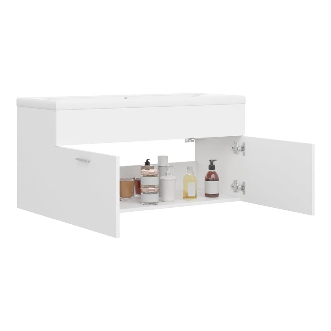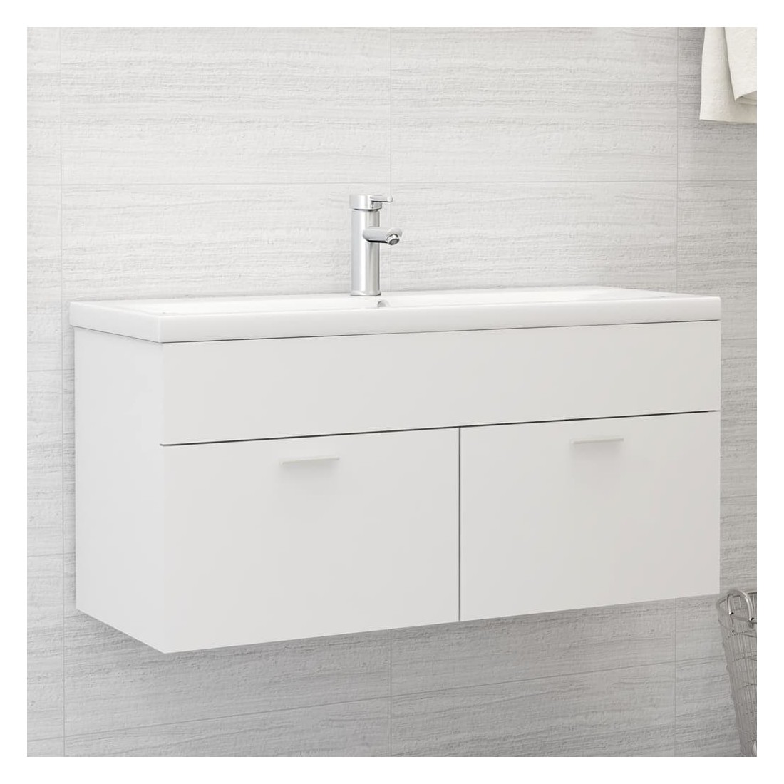 Armoire d'évier avec lavabo intégré Blanc Aggloméré