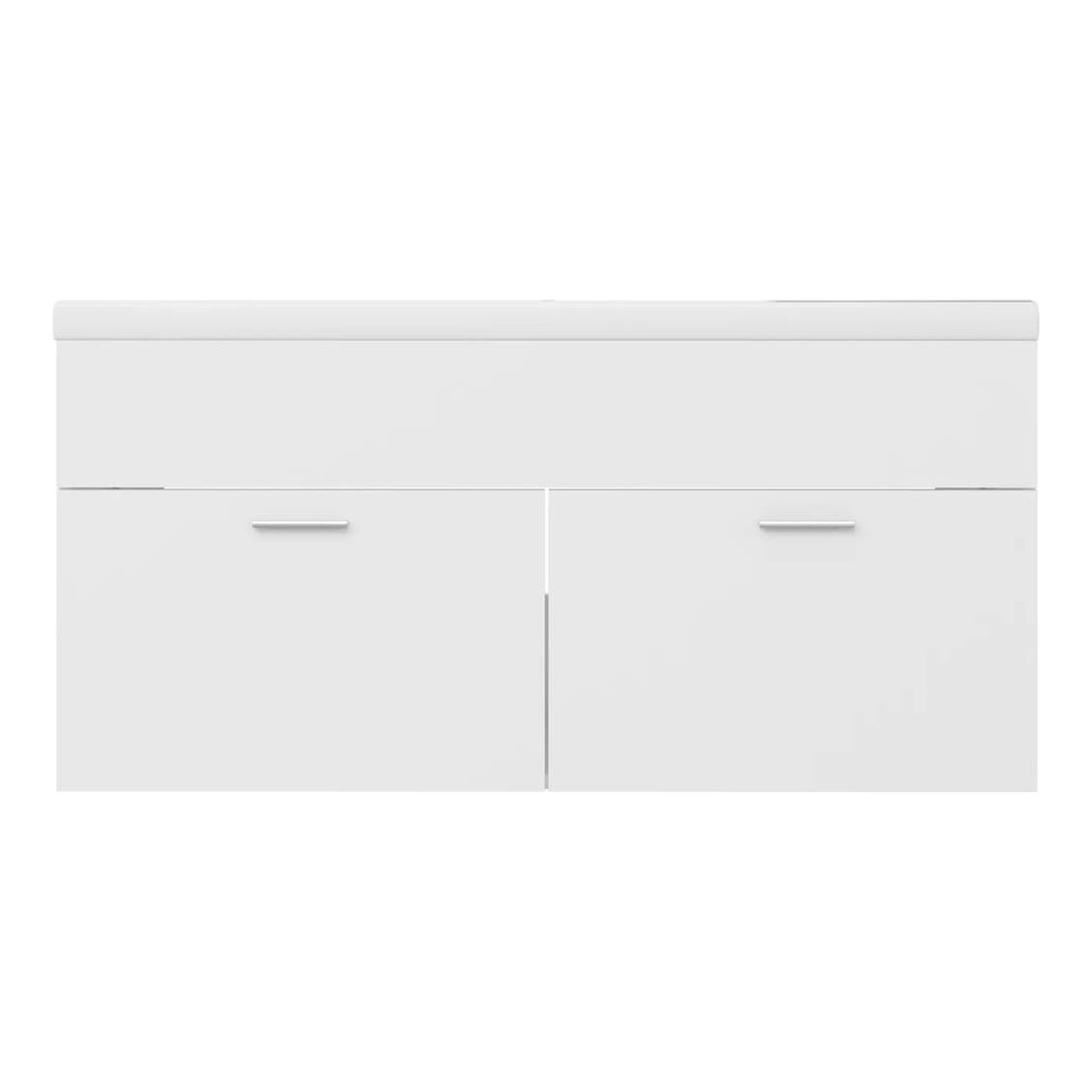 Cette armoire d'évier avec lavabo intégré s'agence parfaitement à votre salle de bain ou toilette avec un aspect saisissant et bien rangé. L'armoire est en aggloméré, ce qui la rend robuste et stable. L'armoire de rangement a 1 compartiment et 2 portes, offrant amplement d'espace pour ranger des objets. Elle s'intègre parfaitement sous l'évier et rend le rangement de la salle de bain très pratique. Fabriqué en céramique, le lavabo peut non seulement servir de récipient pour un usage quotidien, mais également d'ornement dans votre espace de vie. Grâce à son design avant-gardiste et contemporain, ce lavabo s'adaptera à n'importe quel décor. Un trop-plein est également équipé pour évacuer l'eau lorsqu'il est trop plein. Sa surface vitrée lui confère un design à la fois moderne et élégant. De plus, l'armoire et le lavabo sont faciles à nettoyer avec un chiffon humide. Veuillez noter que le robinet et le drain ne sont pas inclus dans la livraison.