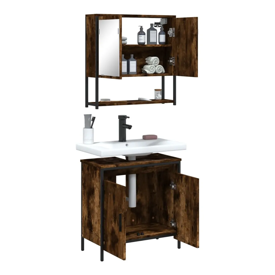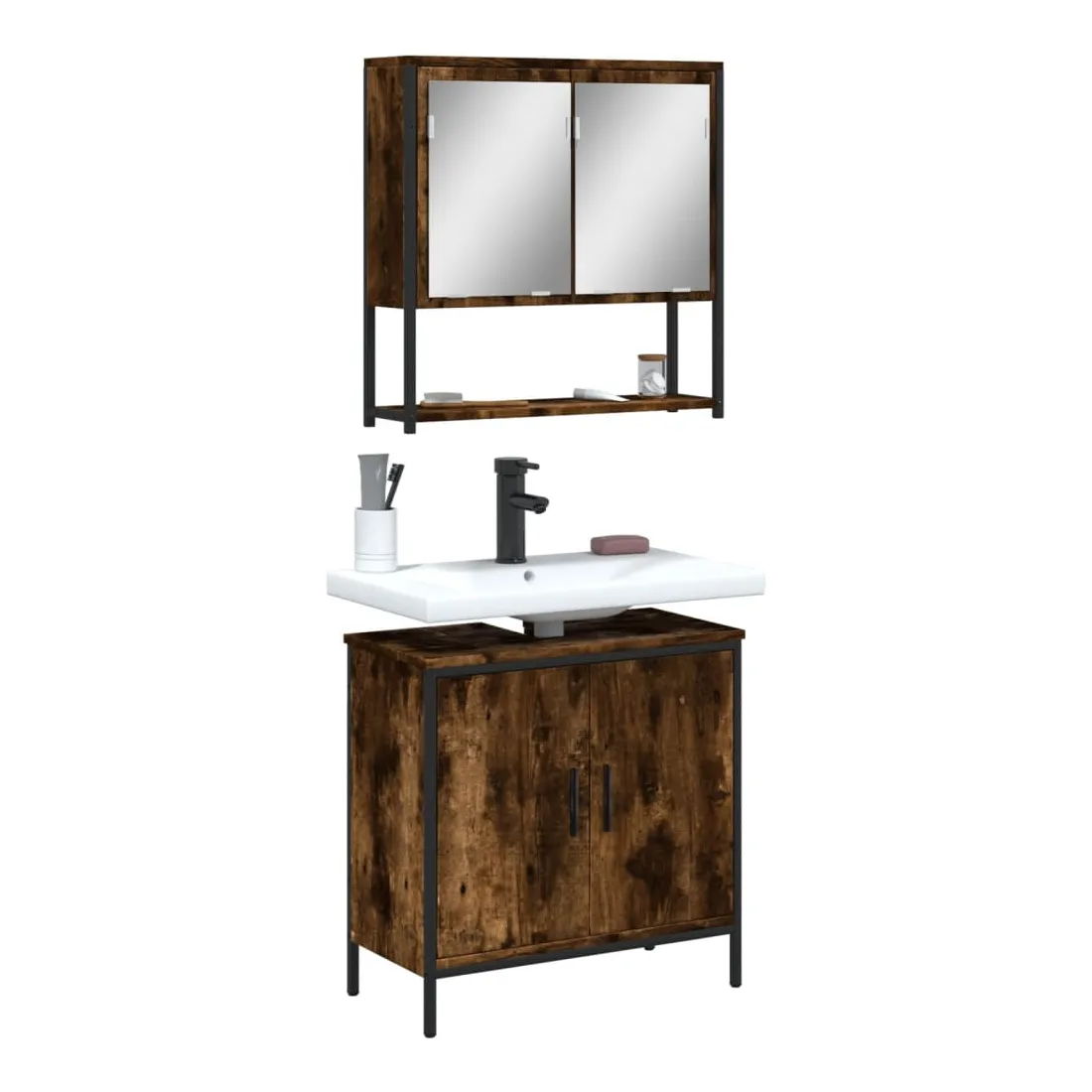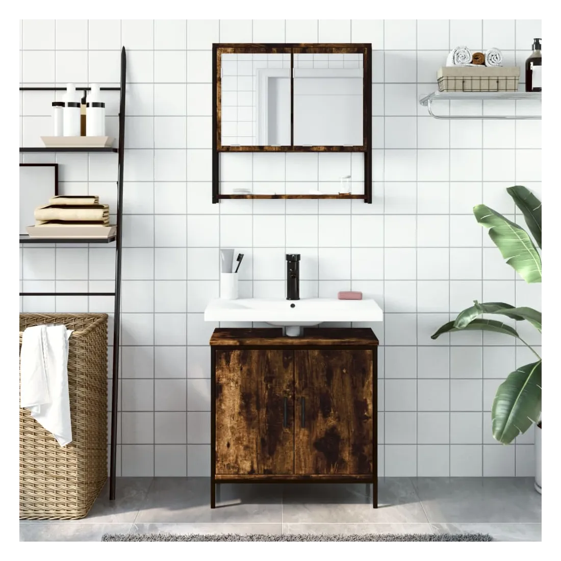 Cet ensemble de meubles de salle de bain pratique, avec un espace de rangement spacieux, est un excellent supplément à votre salle de bain, ce qui lui donne une apparence ordonnée et saisissante ! Matériau durable : le bois d'ingénierie est d'une qualité exceptionnelle avec une surface lisse et présente également résistance, stabilité et résistance à l'humidité.Grand espace de rangement : les meubles de salle de bain offrent diverses options de rangement et un espace spacieux pour ranger des objets dans votre salle de bain.Fonction murale : l'armoire de toilette peut être fixée au mur pour économiser de l'espace au sol, ce qui la rend particulièrement adaptée aux pièces avec un espace limité.Design peu encombrant : la partie supérieure de l'armoire de salle de bains est idéale pour placer le lavabo, ce qui permet d'utiliser pleinement l'espace vacant sous le lavabo.Image claire : la face en verre du miroir offre une réflexion fine et non déformée. Il convient donc pour se maquiller, se raser ou vérifier son costume avant de sortir. Attention :Pour éviter qu'il ne bascule, ce produit doit être utilisé avec le dispositif de fixation murale fourni. Bon à savoir :Les vis et les chevilles pour l'intérieur du mur ne sont pas incluses. Nous vous conseillons de trouver et d'utiliser des vis et des chevilles adaptées spécifiquement à vos murs. Si vous n'êtes pas sûr, vous pouvez consulter un professionnel. Veuillez lire et suivre chaque étape des instructions.