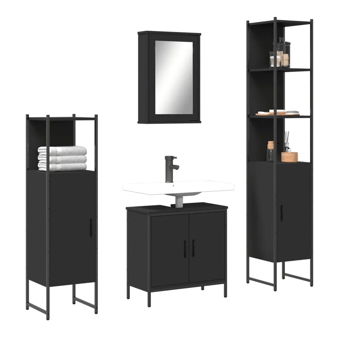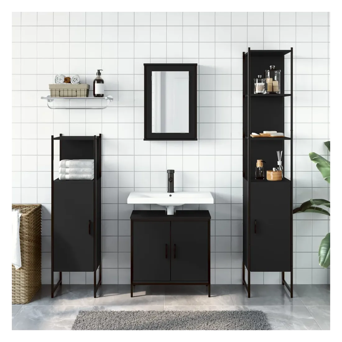 Cet ensemble de meubles de salle de bain pratique, avec un espace de rangement spacieux, est un excellent supplément à votre salle de bain, ce qui lui donne une apparence ordonnée et saisissante ! Matériau durable : le bois d'ingénierie est d'une qualité exceptionnelle avec une surface lisse et présente également résistance, stabilité et résistance à l'humidité.Grand espace de rangement : les meubles de salle de bain offrent diverses options de rangement et un espace spacieux pour ranger des objets dans votre salle de bain.Fonction murale : l'armoire de toilette peut être fixée au mur pour économiser de l'espace au sol, ce qui la rend particulièrement adaptée aux pièces avec un espace limité.Design peu encombrant : la partie supérieure de l'armoire de salle de bains est idéale pour placer le lavabo, ce qui permet d'utiliser pleinement l'espace vacant sous le lavabo.Image claire : la face en verre du miroir offre une réflexion fine et non déformée. Il convient donc pour se maquiller, se raser ou vérifier son costume avant de sortir. Attention :Pour éviter qu'il ne bascule, ce produit doit être utilisé avec le dispositif de fixation murale fourni. Bon à savoir :Les vis et les chevilles pour l'intérieur du mur ne sont pas incluses. Nous vous conseillons de trouver et d'utiliser des vis et des chevilles adaptées spécifiquement à vos murs. Si vous n'êtes pas sûr, vous pouvez consulter un professionnel. Veuillez lire et suivre chaque étape des instructions.