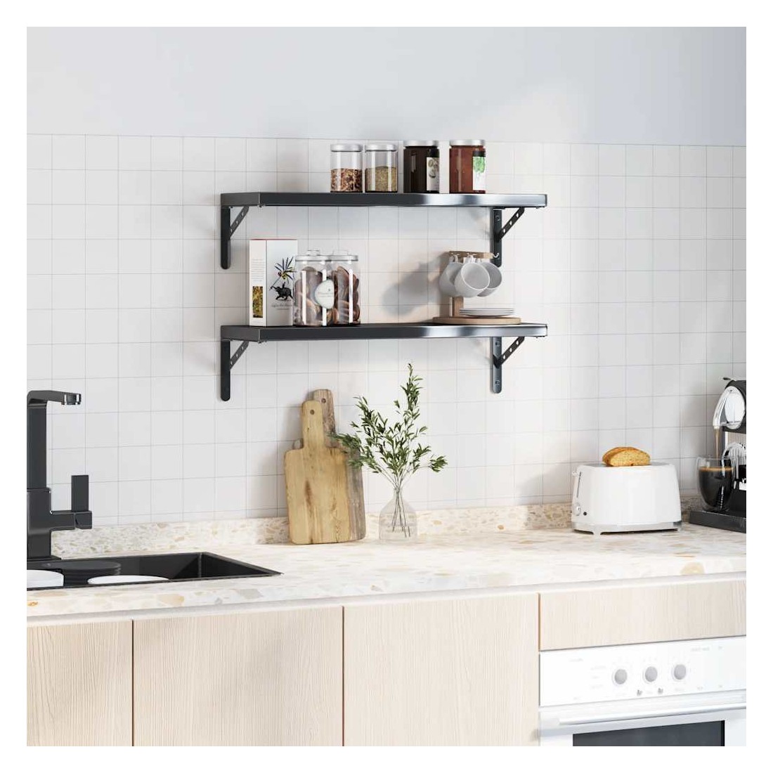 Renforcez l'organisation et l'esthétique de votre maison avec ces supports d'étagères! Matériau robuste : ce support d'étagère est fabriqué en acier inoxydable, ce qui le rend durable, résistant à la corrosion et durable.Facile à utiliser : grâce aux trous pré-percés dans le support, il peut être facilement assemblé avec l'étagère (non incluse) et fixé au mur.Peu encombrant : le support d'étagère convient parfaitement au bricolage. Il permet d'augmenter l'espace de rangement, d'ajouter un style décoratif et d'économiser de l'espace pour les meubles.Multifonctionnel : ce support d'étagère peut être utilisé comme contre-support et comme support d'étagère surplombant. Il peut être utilisé pour les bibliothèques, les étagères de cuisine, les murs de la cour, les étagères de jardin et plus encore.