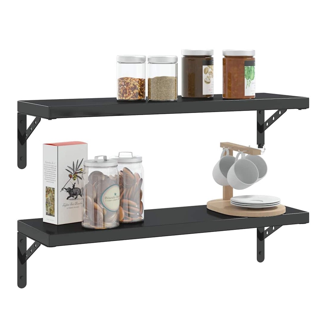 Supports d'étagères 4 pcs 23,5x2,5x15,5cm noir acier inoxydable