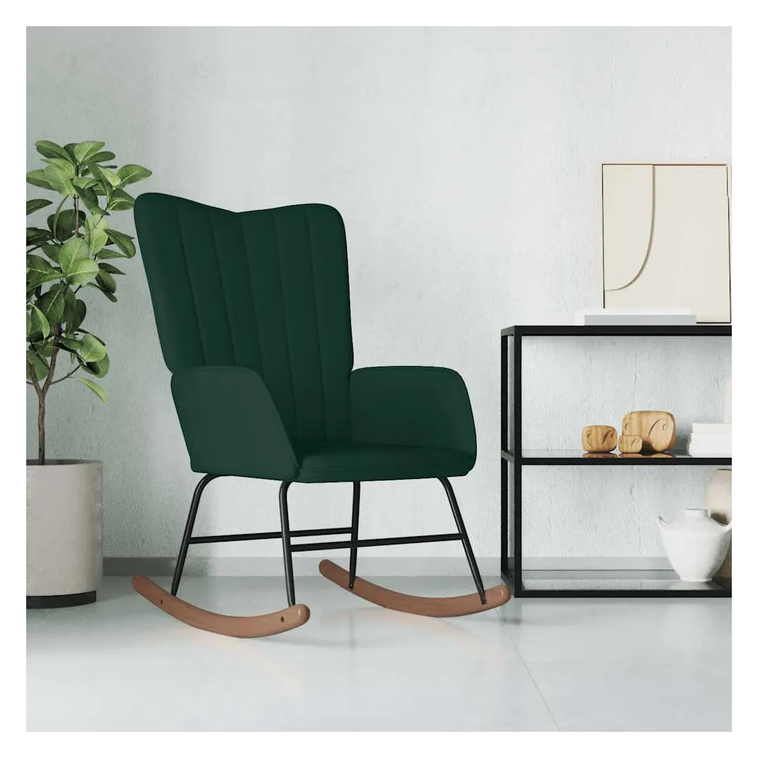 Cette chaise à bascule est un excellent supplément à votre décor existant. Ce fauteuil, avec quelques lignes sur son dossier, est esthétique. Grâce à sa mousse rembourrée recouverte de velours doux au toucher, vous pourrez profiter d'un confort optimal pendant votre temps d'assise. Avec la conception de longs rails à bascule, la chaise de relaxation ne basculera pas facilement. Soutenue par un cadre et des pieds en acier, ainsi que par des rails à bascule en bois, la chaise de salon est stable et durable.