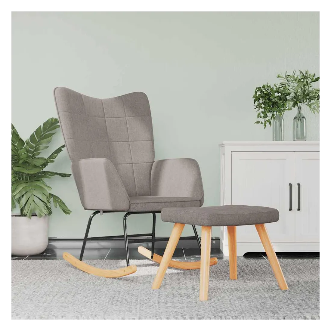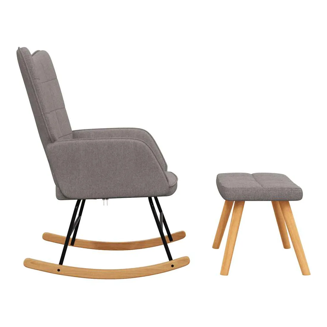Cette chaise à bascule avec tabouret, au design chic et élégant, apportera une touche de modernité à votre décoration. Dotée de quelques blocs, cette chaise de relaxation est esthétique. Grâce à sa mousse rembourrée recouverte d'un tissu doux au toucher, vous pourrez profiter d'un confort optimal pendant votre temps d'assise. Avec la conception de longs rails à bascule, le fauteuil ne basculera pas facilement. De plus, soutenue par un cadre et des pieds en acier, ainsi que par des rails à bascule en bois, la chaise de salon avec tabouret est stable et durable.