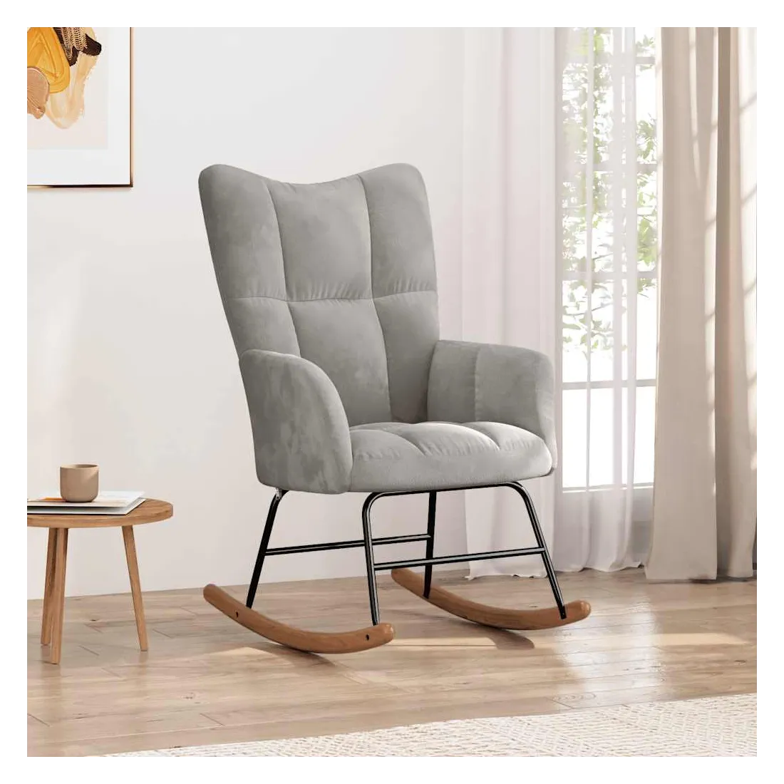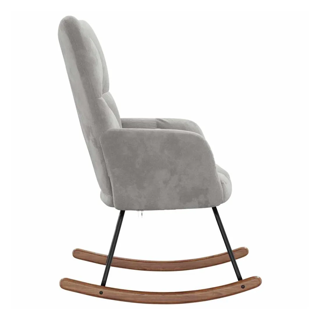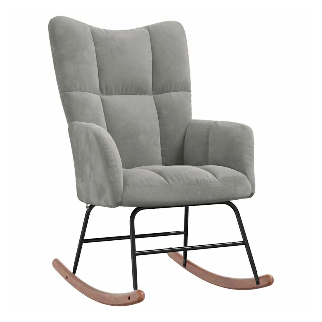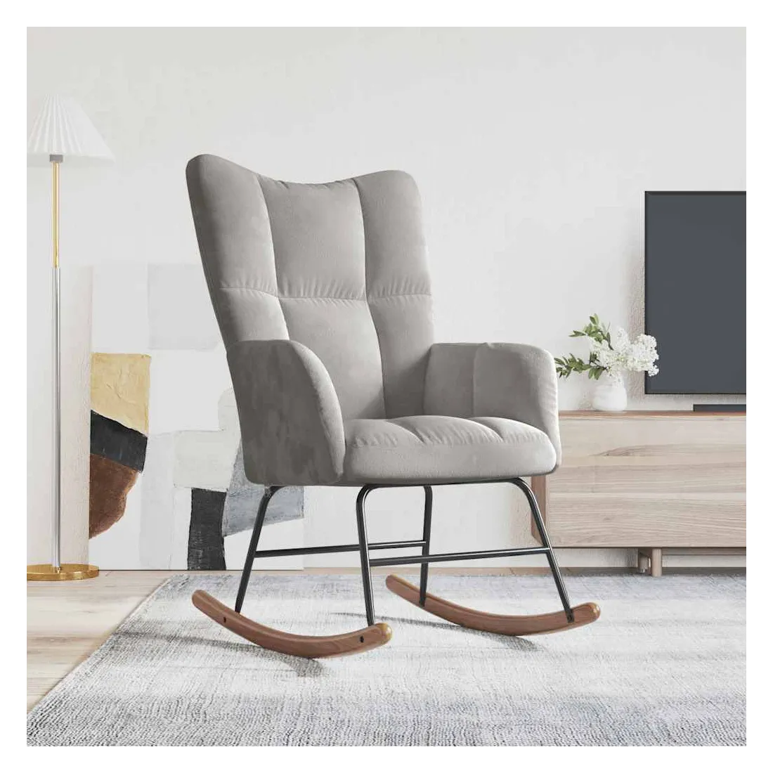 Cette chaise à bascule au design chic et élégant apporte une touche de modernité à votre décoration. Dotée de quelques blocs, cette chaise de relaxation est esthétique. Grâce à sa mousse bien rembourrée recouverte de velours doux au toucher, vous pourrez profiter d'un confort optimal pendant votre temps d'assise. Avec la conception de longs rails à bascule, le fauteuil ne basculera pas facilement. De plus, soutenue par un cadre et des pieds en acier, ainsi que par des rails à bascule en bois, la chaise de salon est stable et durable.