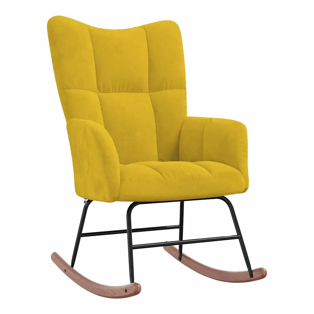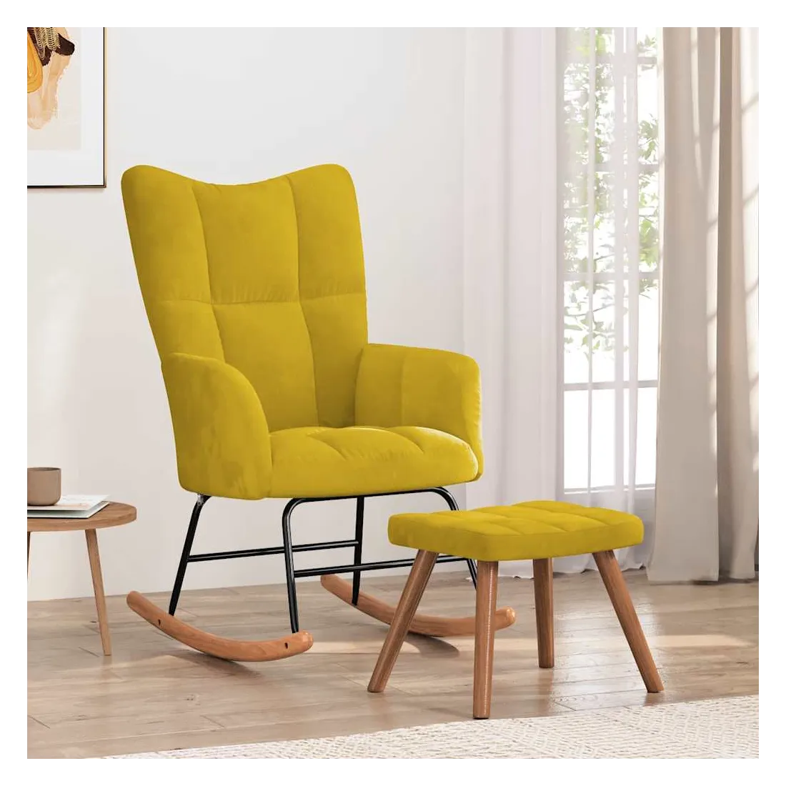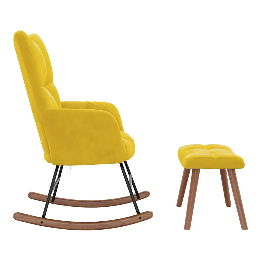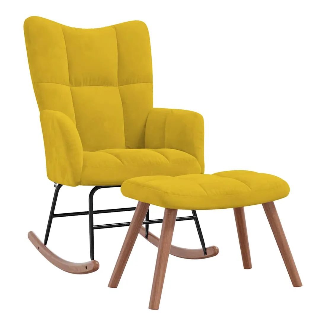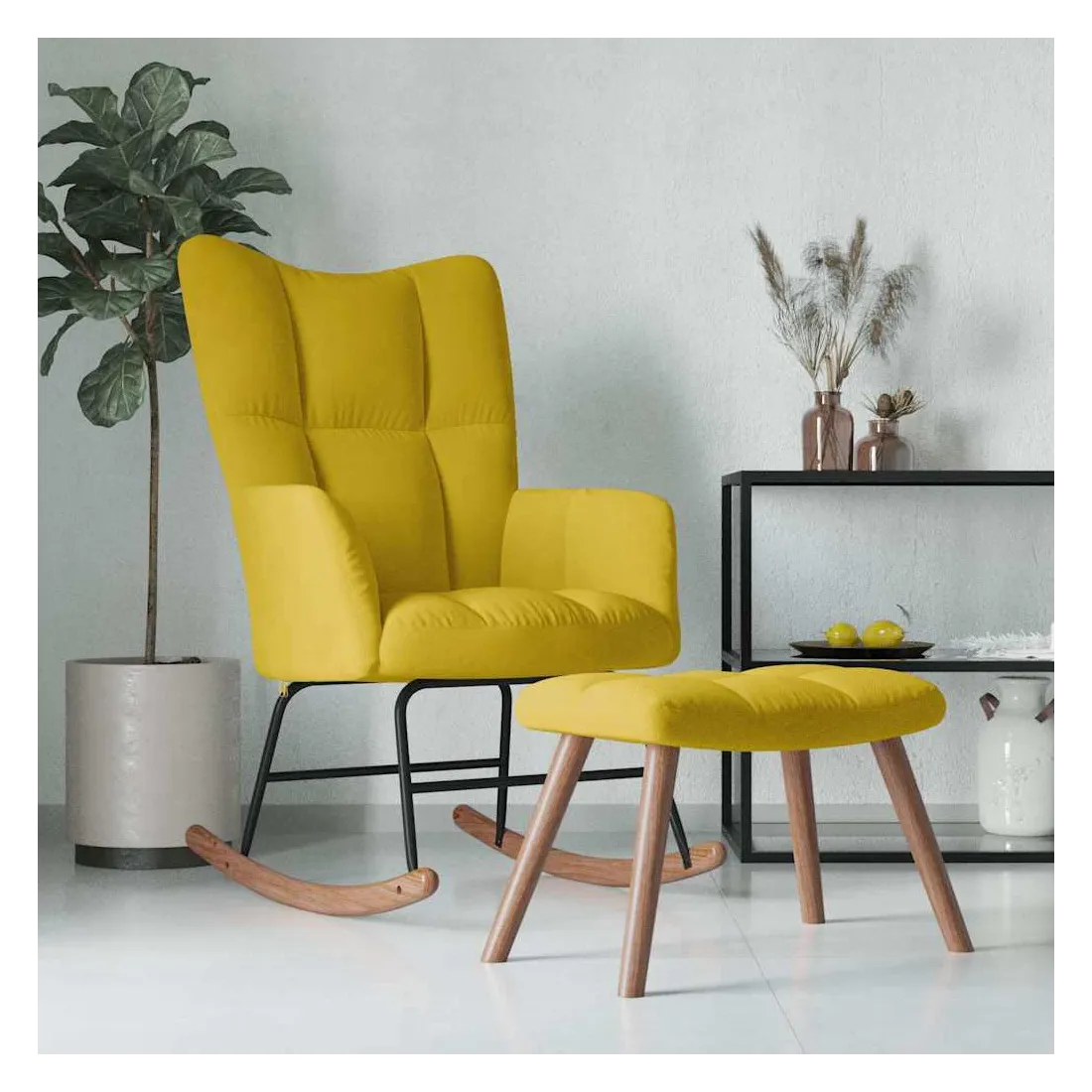 Cette chaise à bascule avec tabouret, au design chic et élégant, apportera une touche de modernité à votre décoration. Dotée de quelques blocs, cette chaise de relaxation est esthétique. Grâce à sa mousse bien rembourrée recouverte de velours doux au toucher, vous pourrez profiter d'un confort optimal pendant votre temps d'assise. Avec la conception de longs rails à bascule, le fauteuil ne basculera pas facilement. De plus, soutenue par un cadre et des pieds en acier, ainsi que par des rails à bascule en bois, la chaise de salon avec un repose-pied est stable et durable.