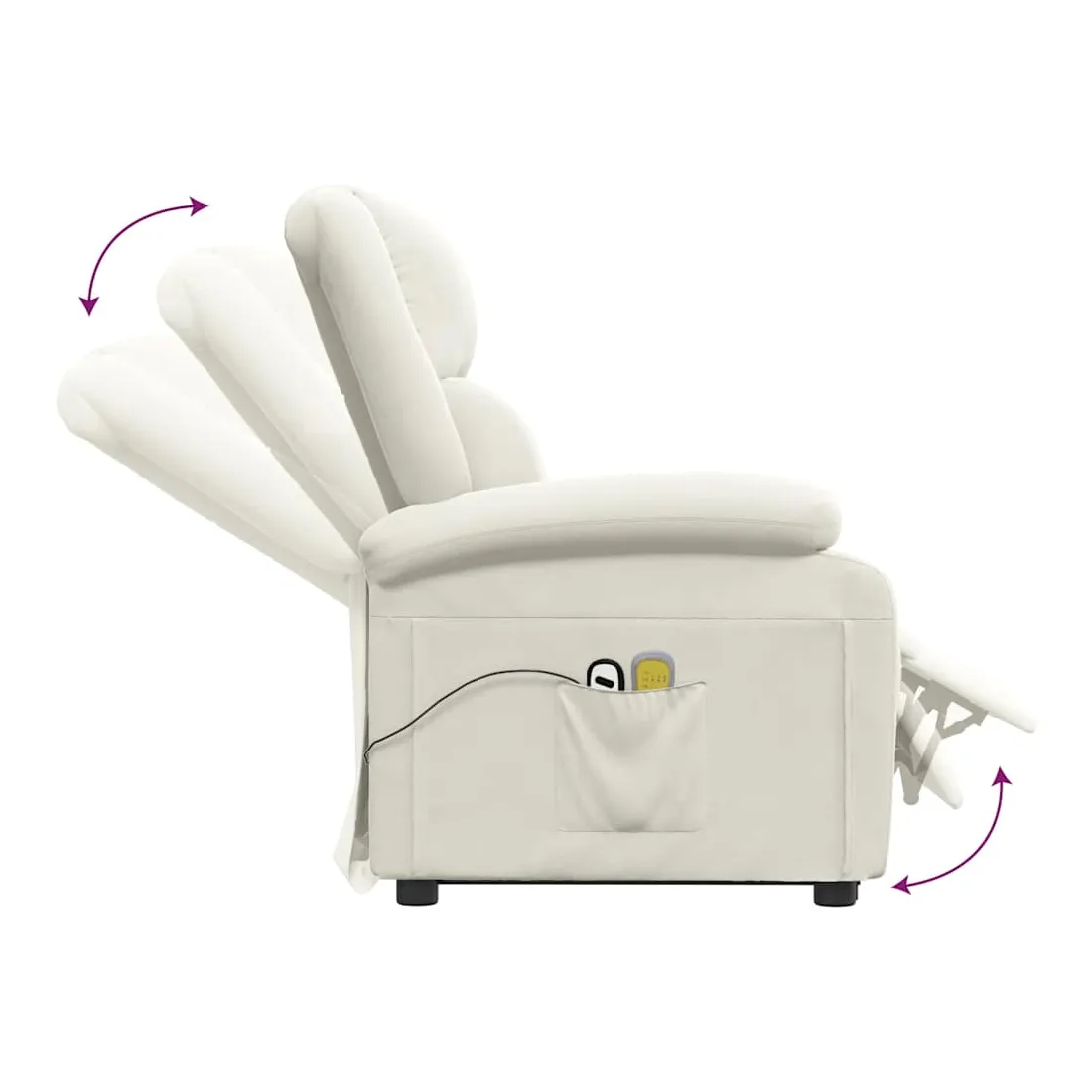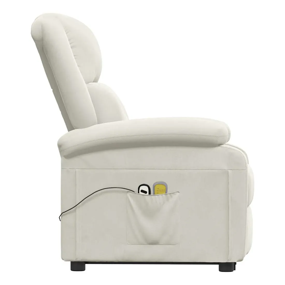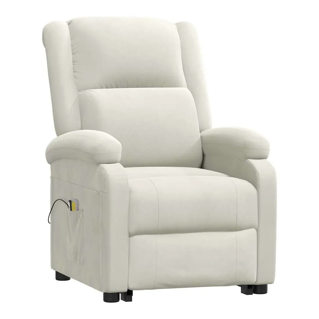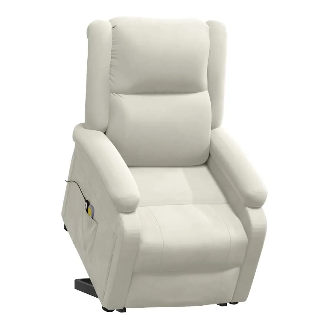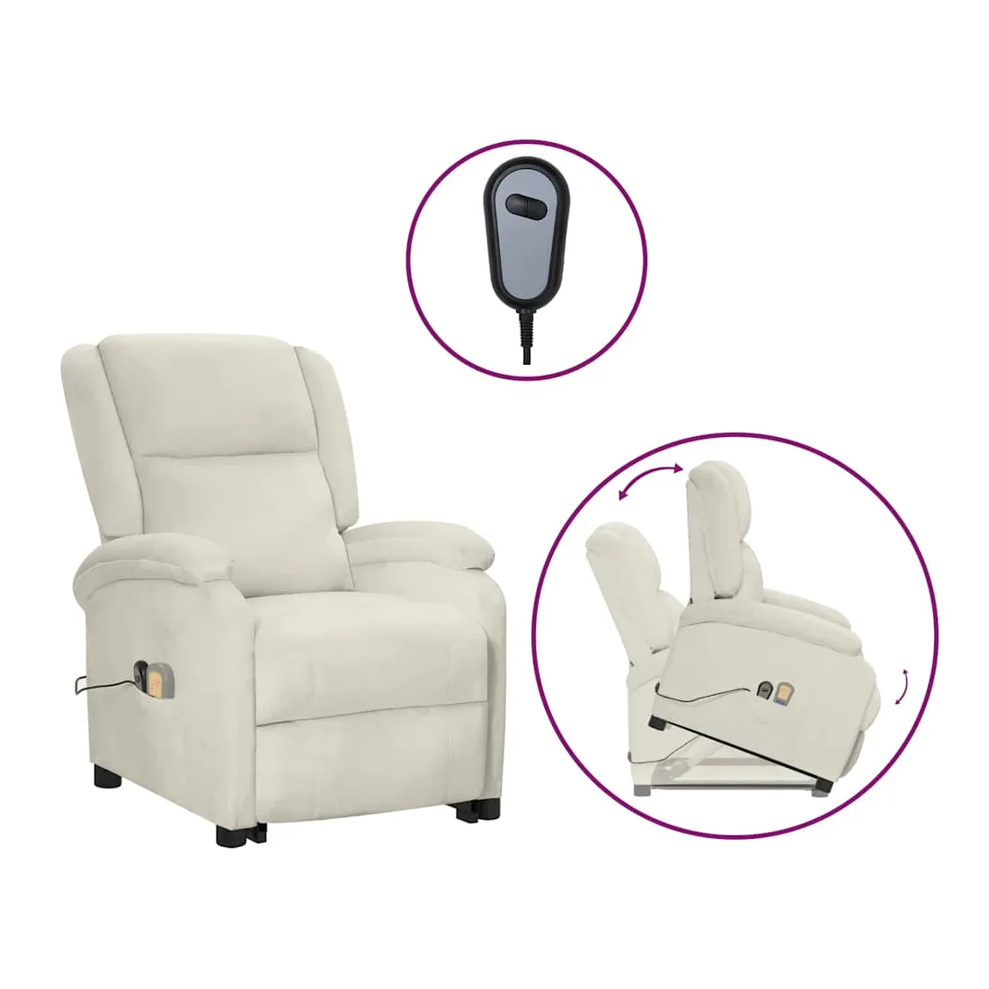 Asseyez-vous et détendez-vous dans ce fauteuil de massage très confortable ! Fonction d'inclinaison manuelle : le fauteuil inclinable est spécialement conçu avec 3 positions d'inclinaison afin que vous puissiez régler manuellement le dossier et le repose-pieds selon votre confort.Fonction de levage électrique : ce fauteuil inclinable pour personnes âgées est équipé d'un moteur électrique pour la fonction de levage. Grâce à la fonction qui pousse toute la chaise vers le haut, vous pouvez facilement vous tenir debout sans stresser votre dos et vos genoux grâce à la commande manuelle à 2 boutons.Fonction de vibration : les 6 points de massage vous permettent de faire l'expérience d'un massage mieux ciblé. De plus, la télécommande incluse vous permet de choisir différents programmes de massage. La fonction de massage est alimentée par le connecteur USB, mais la source d'alimentation USB 5V certifiée n'est pas incluse.Expérience d'assise confortable : le siège, le dossier et les larges accoudoirs rembourrés épais recouverts de velours procurent une sensation confortable et chaleureuse, vous faisant vous sentir enlacé lorsque vous êtes assis. Le velours est un tissu doux et confortable qui est agréable sur la peau.Cadre solide et stable : le cadre en bois et en métal offre une structure solide et une grande stabilité. Ce fauteuil inclinable est confortable et durable.