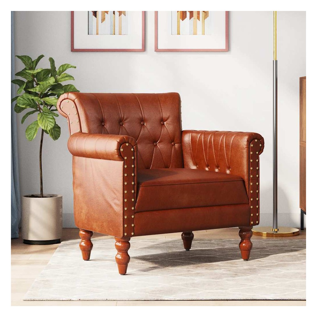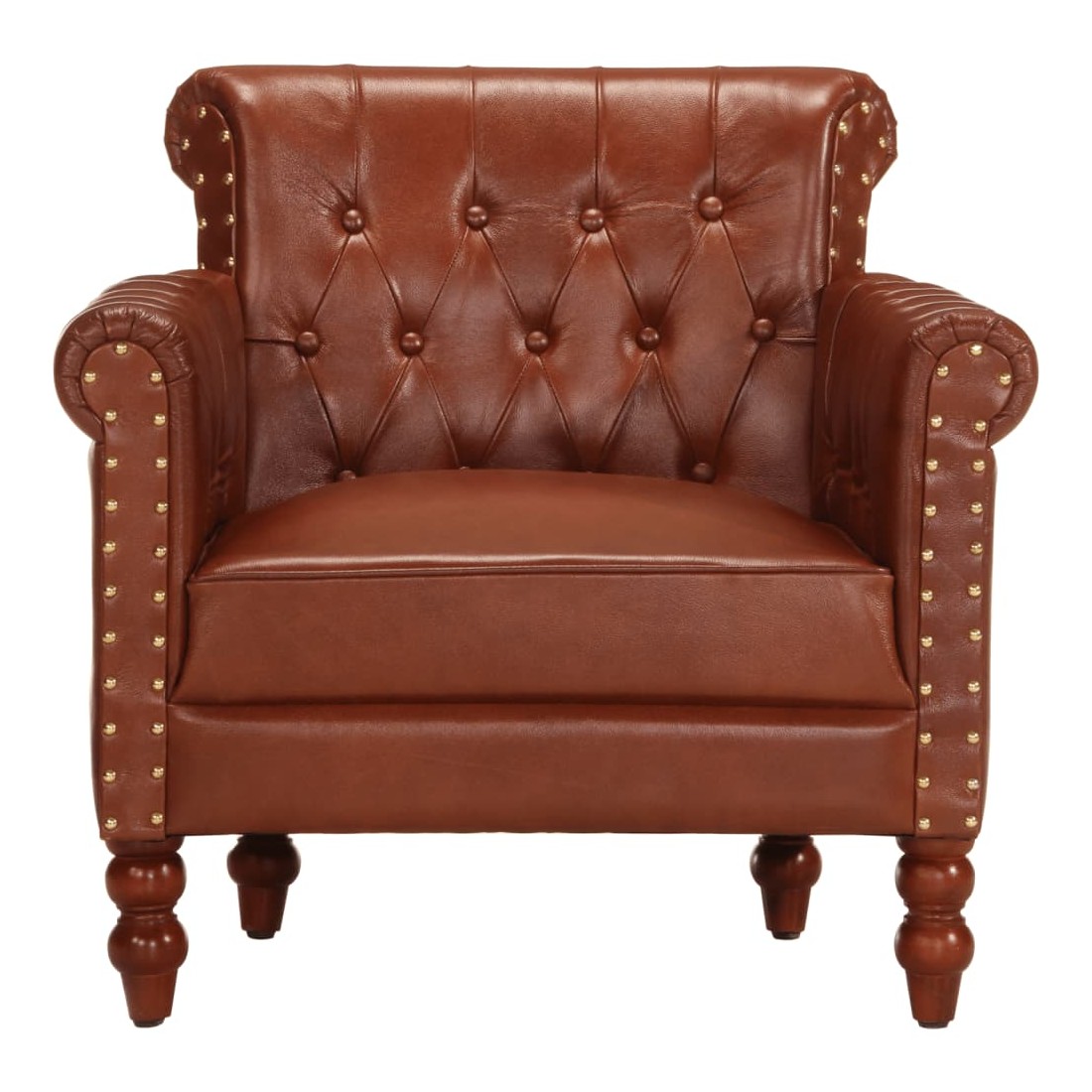 Créez une atmosphère légèrement vintage et chaleureuse dans votre espace de vie avec ce magnifique fauteuil. Ce fauteuil est rembourré de cuir de chèvre véritable résistant, offrant une excellente expérience d’assise. Le canapé est soutenu par des pieds en bois de manguier massif, ce qui le rend stable et robuste.
