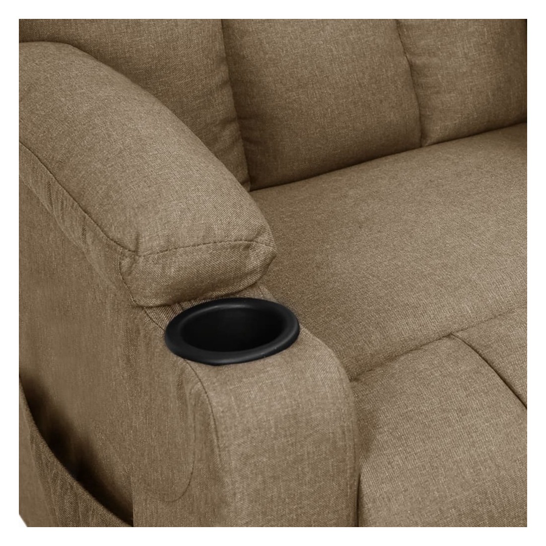Asseyez-vous et détendez-vous dans ce fauteuil très confortable ! Fonction d'inclinaison manuelle : le fauteuil inclinable est spécialement conçu avec 3 positions d'inclinaison afin que vous puissiez régler manuellement le dossier et le repose-pieds selon votre confort.Fonction de levage électrique : ce fauteuil inclinable pour personnes âgées est équipé d'un moteur électrique pour la fonction de levage. Grâce à la fonction qui pousse toute la chaise vers le haut, vous pouvez facilement vous tenir debout sans stresser votre dos et vos genoux grâce à la commande manuelle à 2 boutons.Expérience d'assise confortable : le siège, le dossier et les larges accoudoirs rembourrés épais recouverts de tissu procurent une sensation confortable et chaleureuse, vous permettant de vous sentir enveloppé lorsque vous êtes assis. Le tissu présente un aspect simple et épuré, et est respirant et durable.Cadre solide et stable : le cadre en bois et en métal offre une structure solide et une grande stabilité. Ce fauteuil inclinable est confortable et durable.