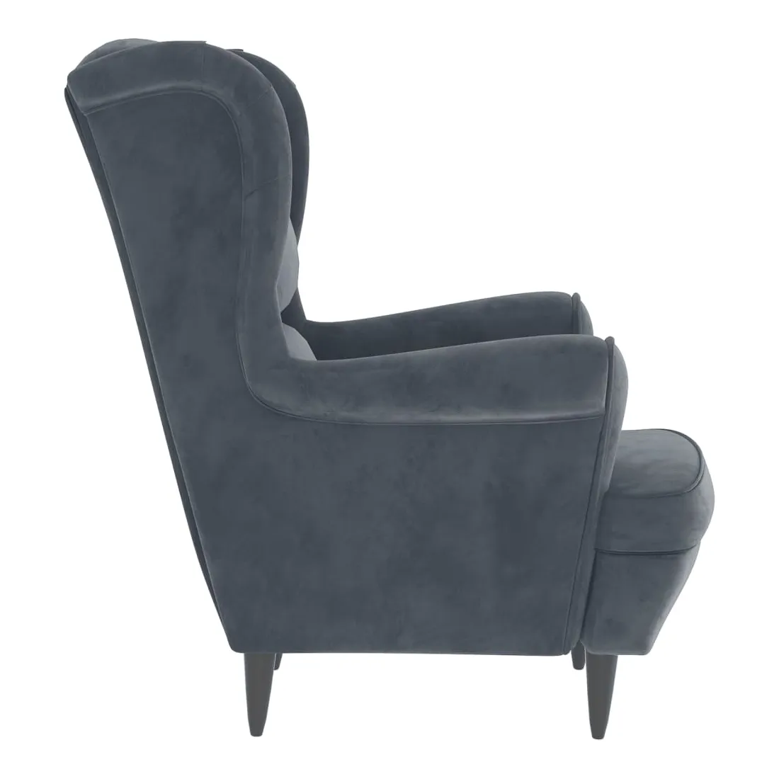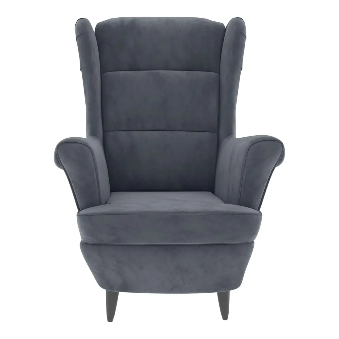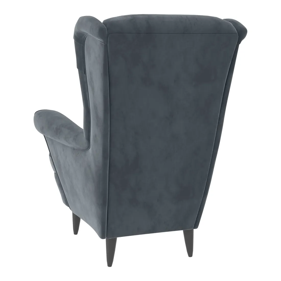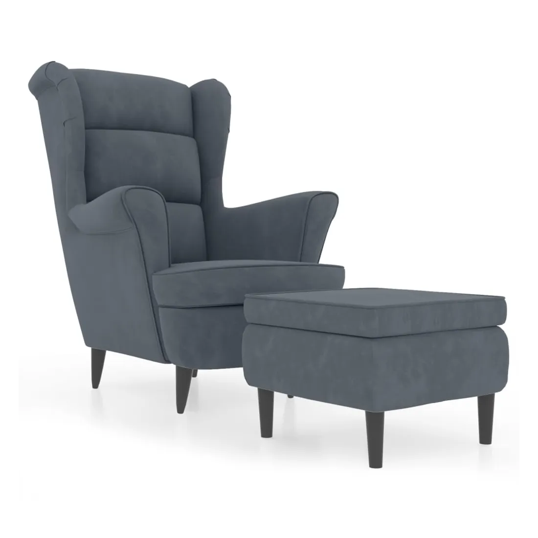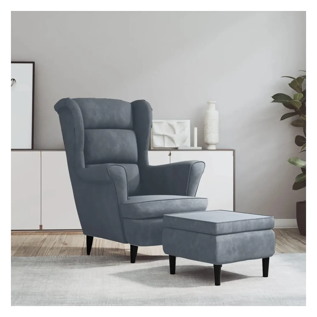 Fauteuil à oreilles avec tabouret gris foncé velours