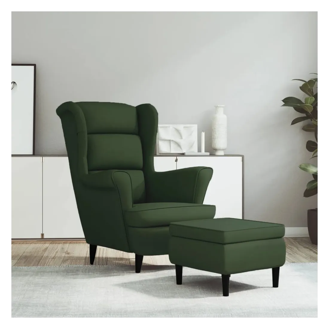 Ce fauteuil confortable avec un tabouret présente un équilibre parfait entre style et fonctionnalité. Il vous offre un endroit confortable pour travailler ou vous reposer. Matériau de qualité : le velours est un tissu doux et luxueux qui se reconnaît à son tas dense de fibres uniformément coupées qui ont une touche lisse. Le tissu en velours présente un toucher doux distinctif, ce qui le rend confortable au toucher.Confort supplémentaire : il est parfait pour vous détendre et reposer vos pieds avec le tabouret inclus. Vous pouvez placer le tabouret n'importe où, selon vos préférences. De plus, les accoudoirs permettent à vos bras de se reposer confortablement.Structure robuste et stable : soutenue par une structure en contreplaqué et des pieds en bois, la chaise de relaxation avec tabouret est solide et stable.
