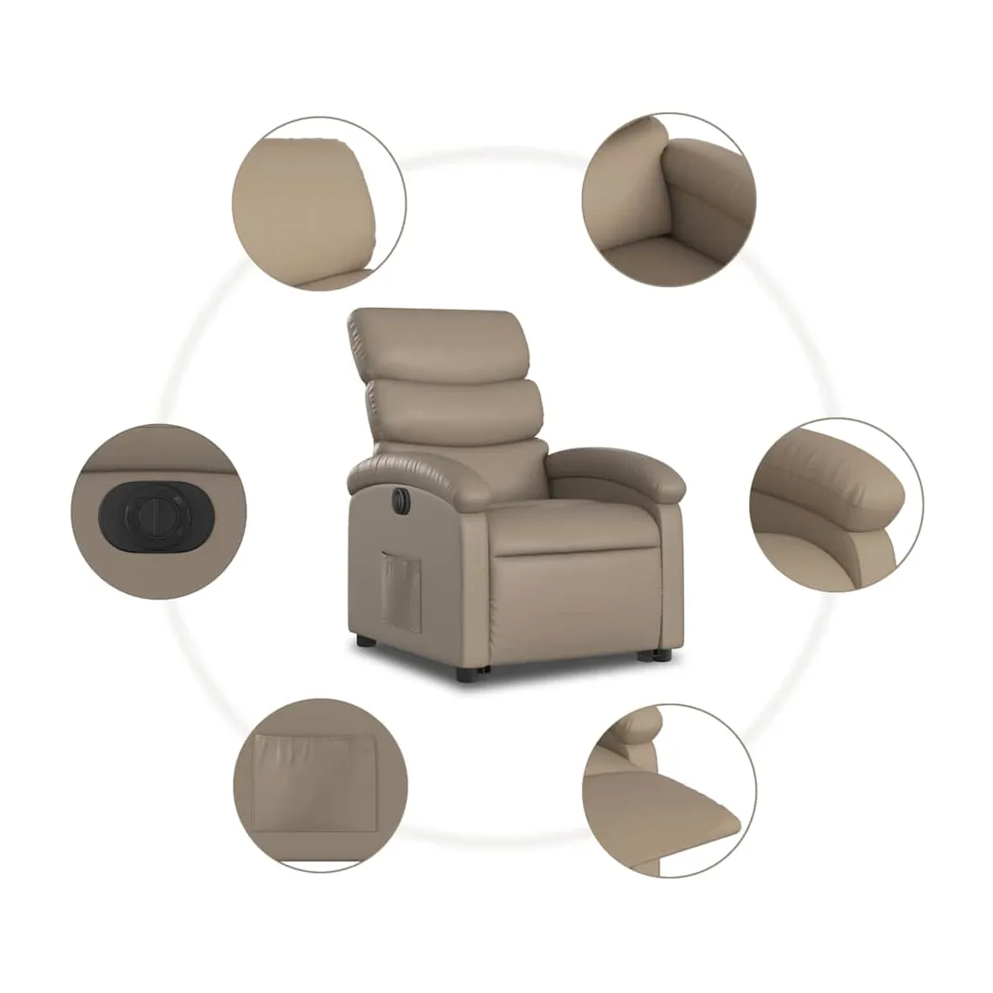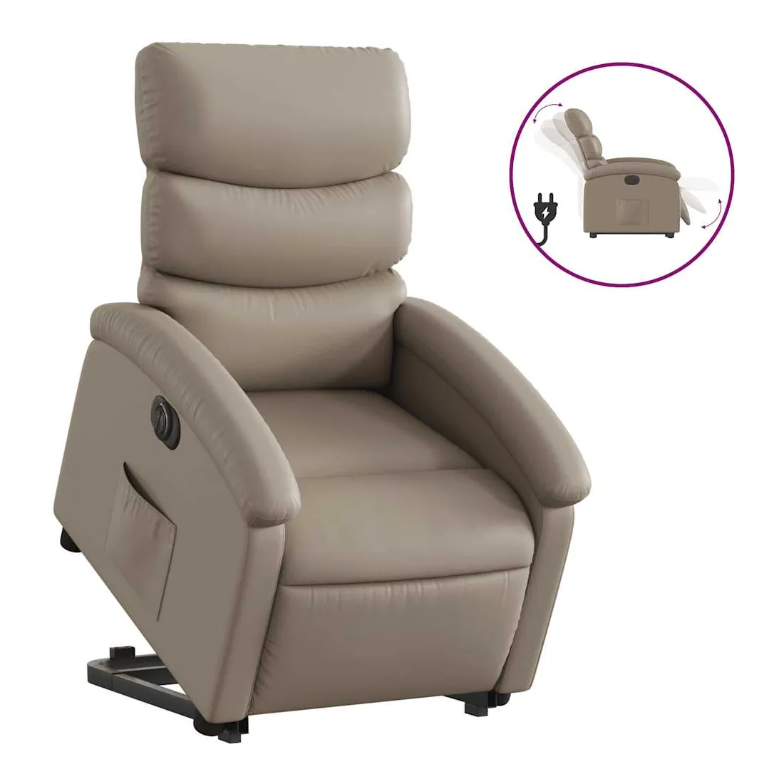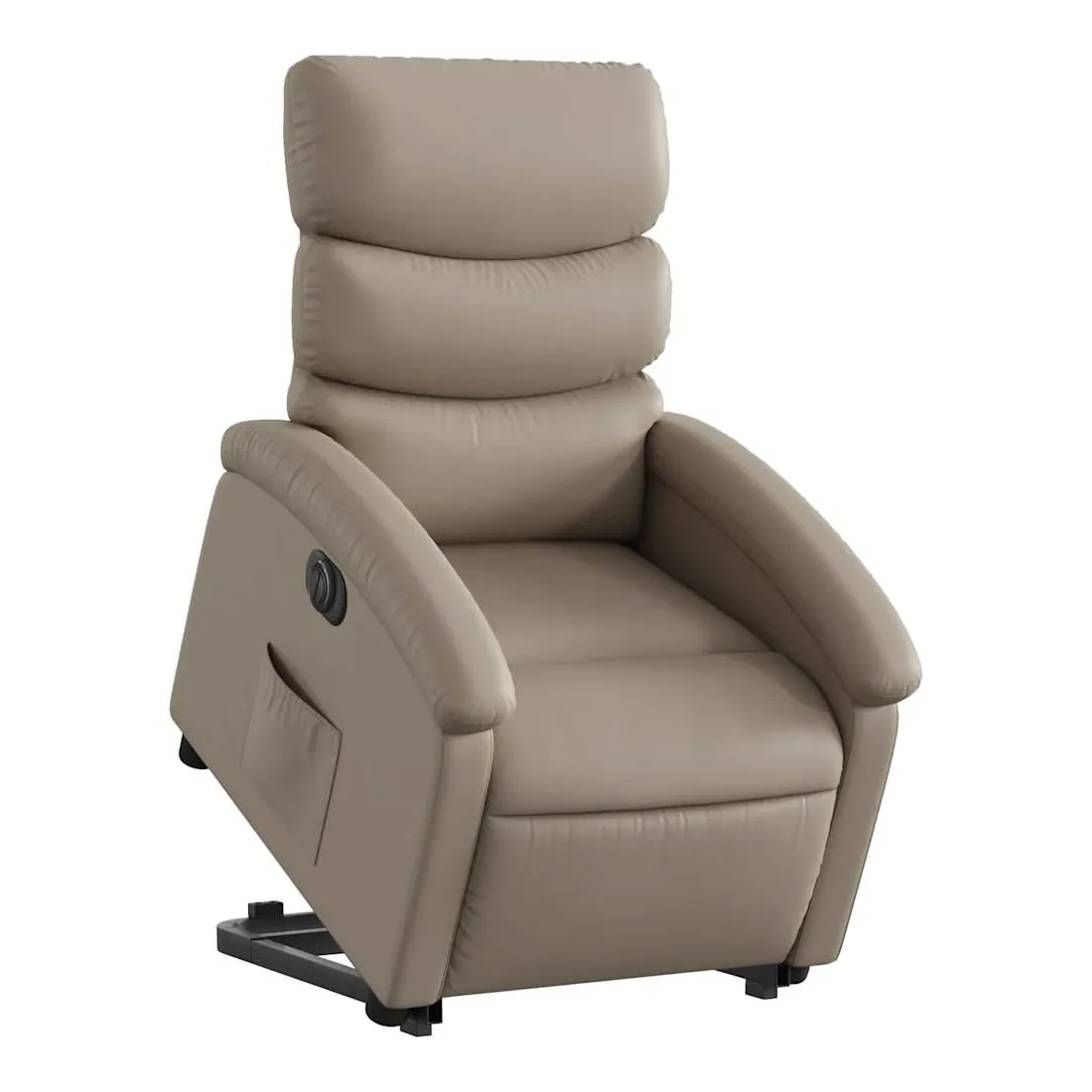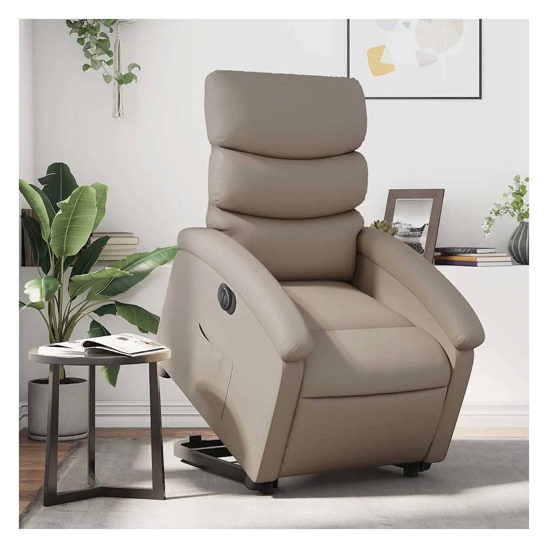 Asseyez-vous et détendez-vous dans ce fauteuil inclinable électrique très confortable ! Fonction de levage électrique : ce fauteuil inclinable pour personnes âgées est équipé d'un moteur électrique pour la fonction de levage. Grâce à la fonction qui pousse toute la chaise vers le haut, vous pouvez facilement vous tenir debout sans stresser votre dos et vos genoux en appuyant simplement sur le bouton.Fonction d'inclinaison électrique : ce fauteuil inclinable est également équipé d'un moteur électrique qui permet de régler automatiquement le repose-pied et le dossier dans n'importe quelle position, selon votre confort, en appuyant simplement sur le bouton situé sur le côté du fauteuil. Cette fonction permet une inclinaison maximale de 135 degrés. En outre, le dossier peut revenir automatiquement à sa position d'origine par une simple pression sur le bouton.Expérience de siège confortable : le siège, le dossier et les larges accoudoirs rembourrés épais recouverts de similicuir procurent une sensation confortable, vous faisant vous sentir enlacé lorsque vous êtes assis. Le similicuir est un matériau très résistant. Il est résistant aux taches, ce qui le rend facile à nettoyer avec un chiffon humide. La surface lisse donne également un aspect luxueux et la beauté du cuir véritable.Poche latérale pratique : ce fauteuil est doté d'une poche latérale pour vous permettre de garder vos objets essentiels à portée de main.Cadre solide et stable : le cadre en bois et en métal offre une structure solide et une grande stabilité. Ce fauteuil inclinable est confortable et durable.