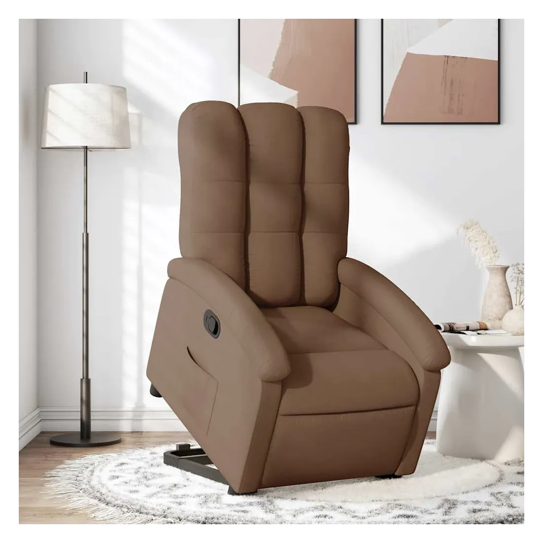Asseyez-vous et détendez-vous dans ce fauteuil inclinable très confortable ! Fonction de levage électrique : ce fauteuil inclinable pour personnes âgées est équipé d'un moteur électrique pour la fonction de levage. Grâce à la fonction qui pousse toute la chaise vers le haut, vous pouvez facilement vous tenir debout sans stresser votre dos et vos genoux en appuyant simplement sur le bouton.Fonction d'inclinaison manuelle : ce fauteuil inclinable est doté d'une poignée du côté droit. Vous pouvez régler manuellement le repose-pieds et le dossier dans n'importe quelle position selon votre confort en tirant simplement sur la poignée. Cette fonction permet une inclinaison maximale de 135 degrés. De plus, le dossier peut revenir rapidement à sa position d'origine en tirant simplement sur la poignée.Expérience d'assise confortable : le siège, le dossier et les larges accoudoirs bien rembourrés recouverts de tissu procurent une sensation confortable et chaleureuse, vous permettant de vous sentir enveloppé lorsque vous êtes assis. Le tissu présente un aspect simple et épuré et est respirant et durable.Poche latérale pratique : ce fauteuil est doté d'une poche latérale pour vous permettre de garder vos objets essentiels à portée de main.Cadre solide et stable : le cadre en bois et en métal offre une structure solide et une grande stabilité. Ce fauteuil inclinable est confortable et durable.