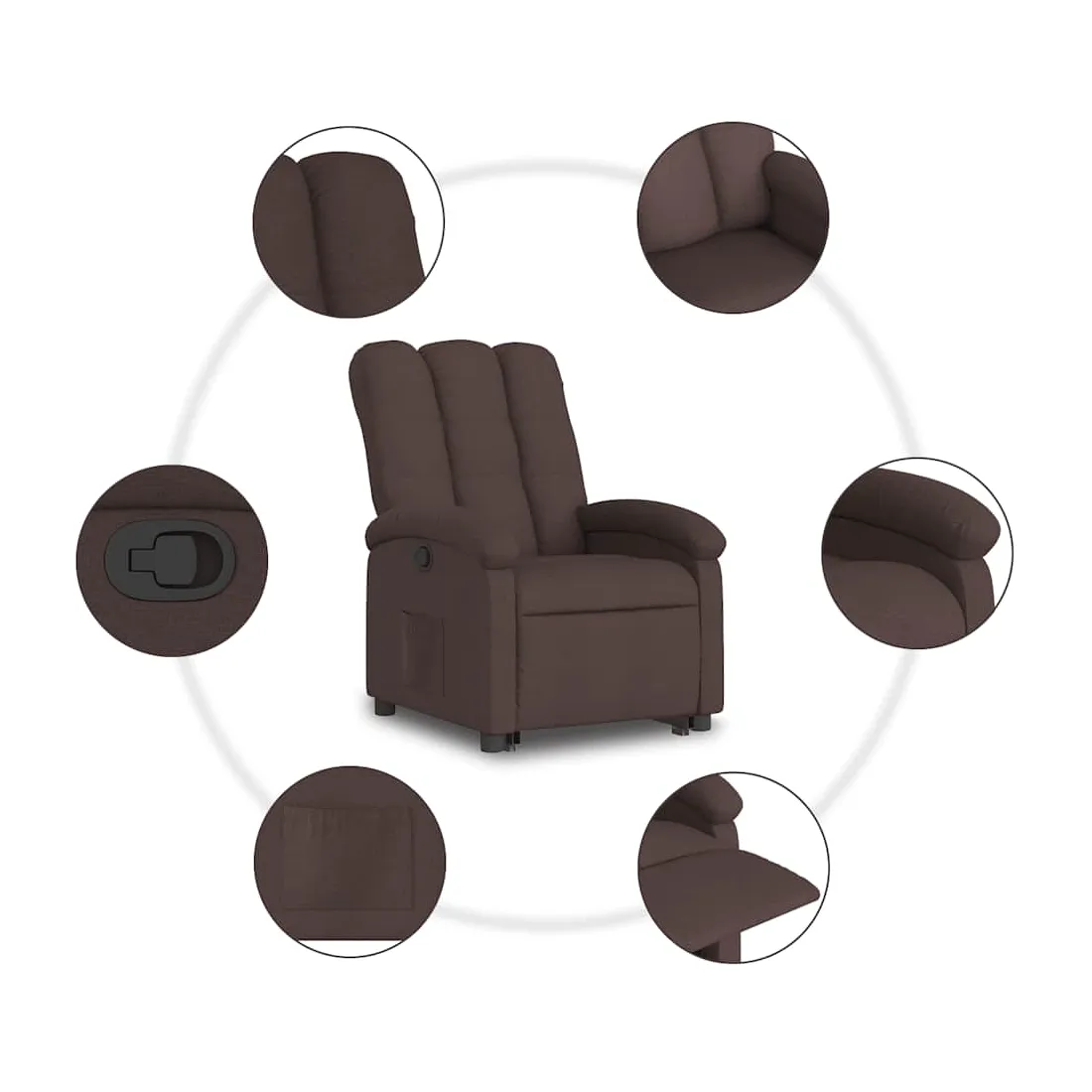 Asseyez-vous et détendez-vous dans ce fauteuil inclinable très confortable ! Fonction de levage électrique : ce fauteuil inclinable pour personnes âgées est équipé d'un moteur électrique pour la fonction de levage. Grâce à la fonction qui pousse toute la chaise vers le haut, vous pouvez facilement vous tenir debout sans stresser votre dos et vos genoux en appuyant simplement sur le bouton.Fonction d'inclinaison manuelle : ce fauteuil inclinable est doté d'une poignée du côté droit. Vous pouvez régler manuellement le repose-pieds et le dossier dans n'importe quelle position selon votre confort en tirant simplement sur la poignée. Cette fonction permet une inclinaison maximale de 135 degrés. De plus, le dossier peut revenir rapidement à sa position d'origine en tirant simplement sur la poignée.Expérience d'assise confortable : le siège, le dossier et les larges accoudoirs bien rembourrés recouverts de tissu procurent une sensation confortable et chaleureuse, vous permettant de vous sentir enveloppé lorsque vous êtes assis. Le tissu présente un aspect simple et épuré et est respirant et durable.Poche latérale pratique : ce fauteuil est doté d'une poche latérale pour vous permettre de garder vos objets essentiels à portée de main.Cadre solide et stable : le cadre en bois et en métal offre une structure solide et une grande stabilité. Ce fauteuil inclinable est confortable et durable.