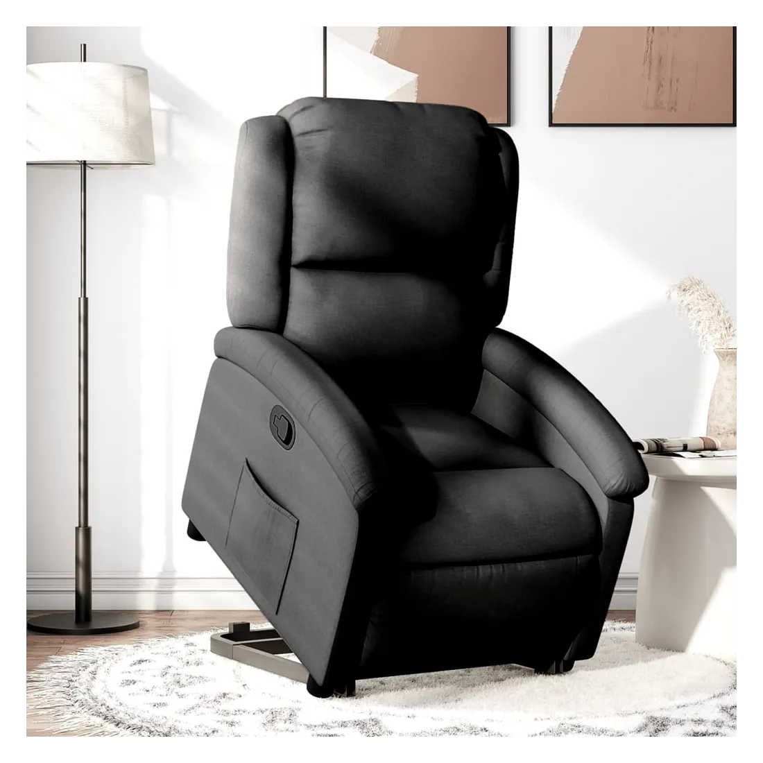 Asseyez-vous et détendez-vous dans ce fauteuil inclinable très confortable ! Fonction de levage électrique : ce fauteuil inclinable pour personnes âgées est équipé d'un moteur électrique pour la fonction de levage. Grâce à la fonction qui pousse toute la chaise vers le haut, vous pouvez facilement vous tenir debout sans stresser votre dos et vos genoux en appuyant simplement sur le bouton.Fonction d'inclinaison manuelle : ce fauteuil inclinable est doté d'une poignée du côté droit. Vous pouvez régler manuellement le repose-pieds et le dossier dans n'importe quelle position selon votre confort en tirant simplement sur la poignée. Cette fonction permet une inclinaison maximale de 135 degrés. De plus, le dossier peut revenir rapidement à sa position d'origine en tirant simplement sur la poignée.Expérience d'assise confortable : le siège, le dossier et les larges accoudoirs bien rembourrés recouverts de tissu procurent une sensation confortable et chaleureuse, vous permettant de vous sentir enveloppé lorsque vous êtes assis. Le tissu présente un aspect simple et épuré et est respirant et durable.Poche latérale pratique : ce fauteuil est doté d'une poche latérale pour vous permettre de garder vos objets essentiels à portée de main.Cadre solide et stable : le cadre en bois et en métal offre une structure solide et une grande stabilité. Ce fauteuil inclinable est confortable et durable.