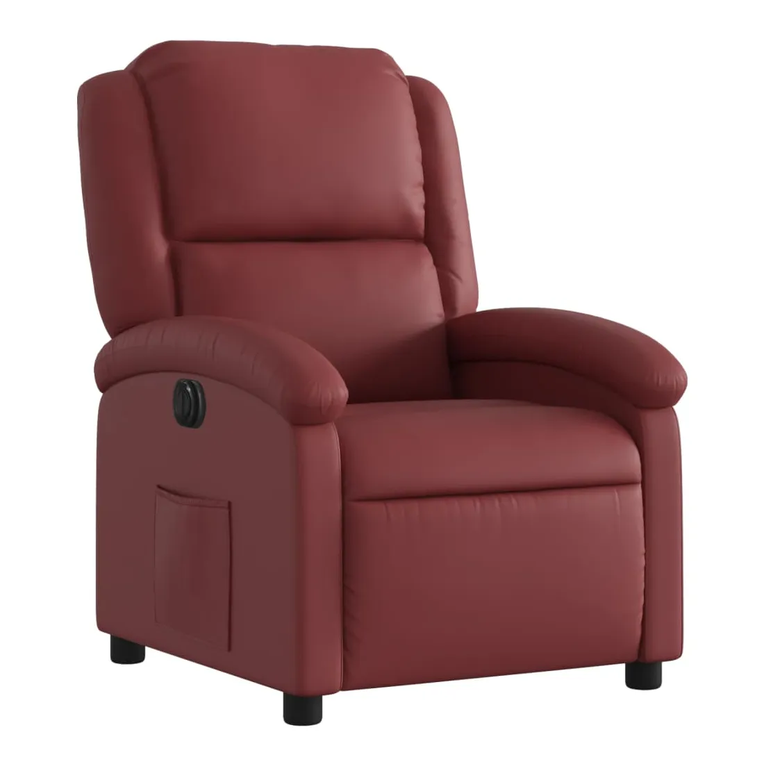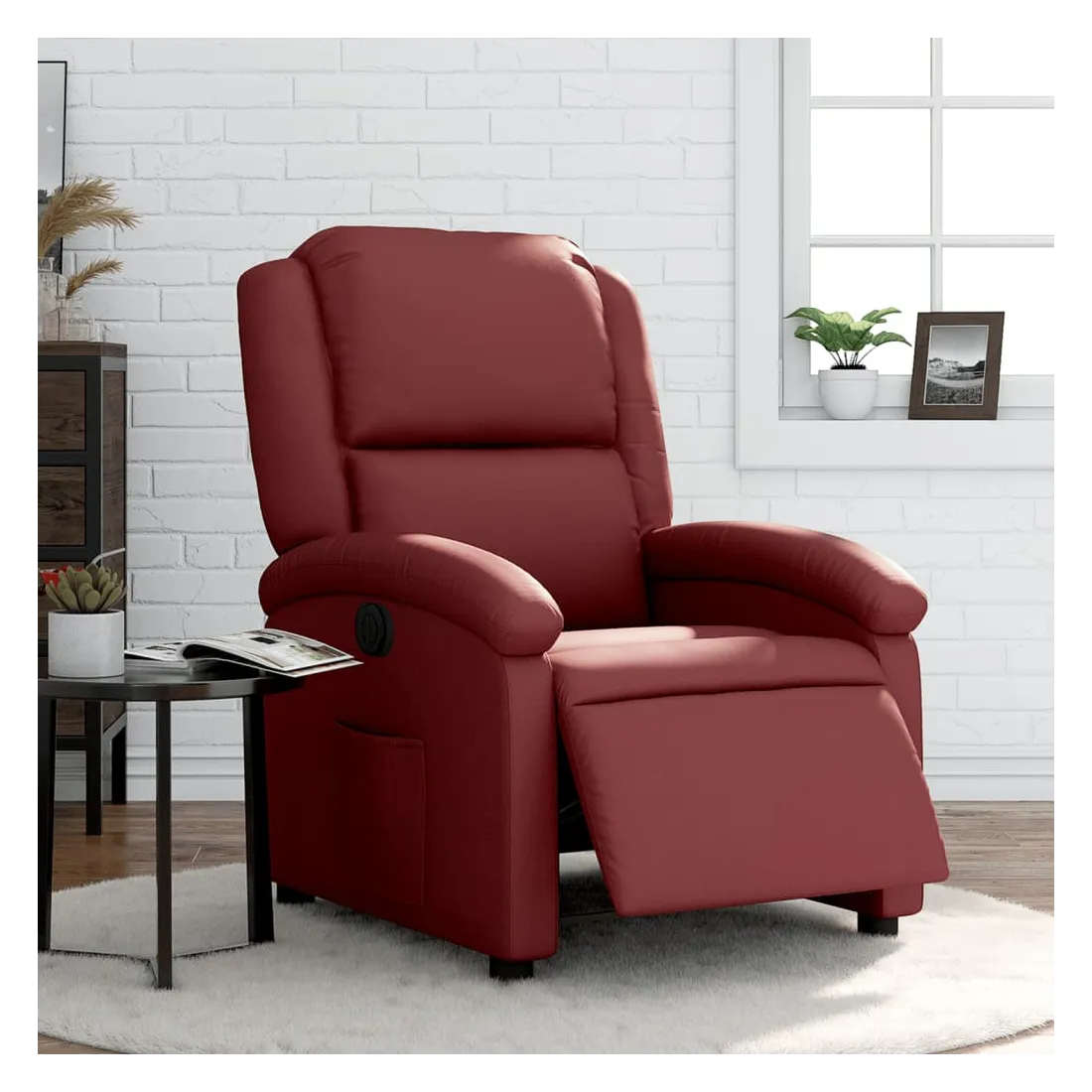 Asseyez-vous et détendez-vous dans ce fauteuil inclinable électrique très confortable ! Fonction d'inclinaison électrique : ce fauteuil inclinable est équipé d'un moteur électrique qui permet de régler automatiquement le repose-pied et le dossier dans n'importe quelle position, selon votre confort, en appuyant simplement sur le bouton situé sur le côté du fauteuil. Cette fonction permet une inclinaison maximale de 135 degrés. En outre, le dossier peut revenir automatiquement à sa position d'origine par une simple pression sur le bouton.Expérience de siège confortable : le siège, le dossier et les larges accoudoirs rembourrés épais recouverts de similicuir procurent une sensation confortable, vous faisant vous sentir enlacé lorsque vous êtes assis. Le similicuir est un matériau très résistant. Il est résistant aux taches, ce qui le rend facile à nettoyer avec un chiffon humide. La surface lisse donne également un aspect luxueux et la beauté du cuir véritable.Poche latérale pratique : ce fauteuil est doté d'une poche latérale pour vous permettre de garder vos objets essentiels à portée de main.Cadre solide et stable : le cadre en bois et en métal offre une structure solide et une grande stabilité. Ce fauteuil inclinable est confortable et durable.