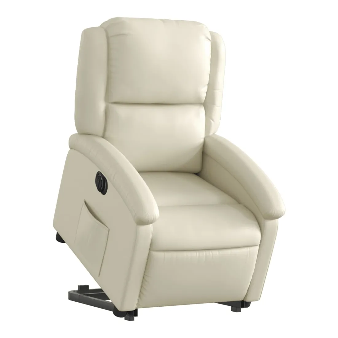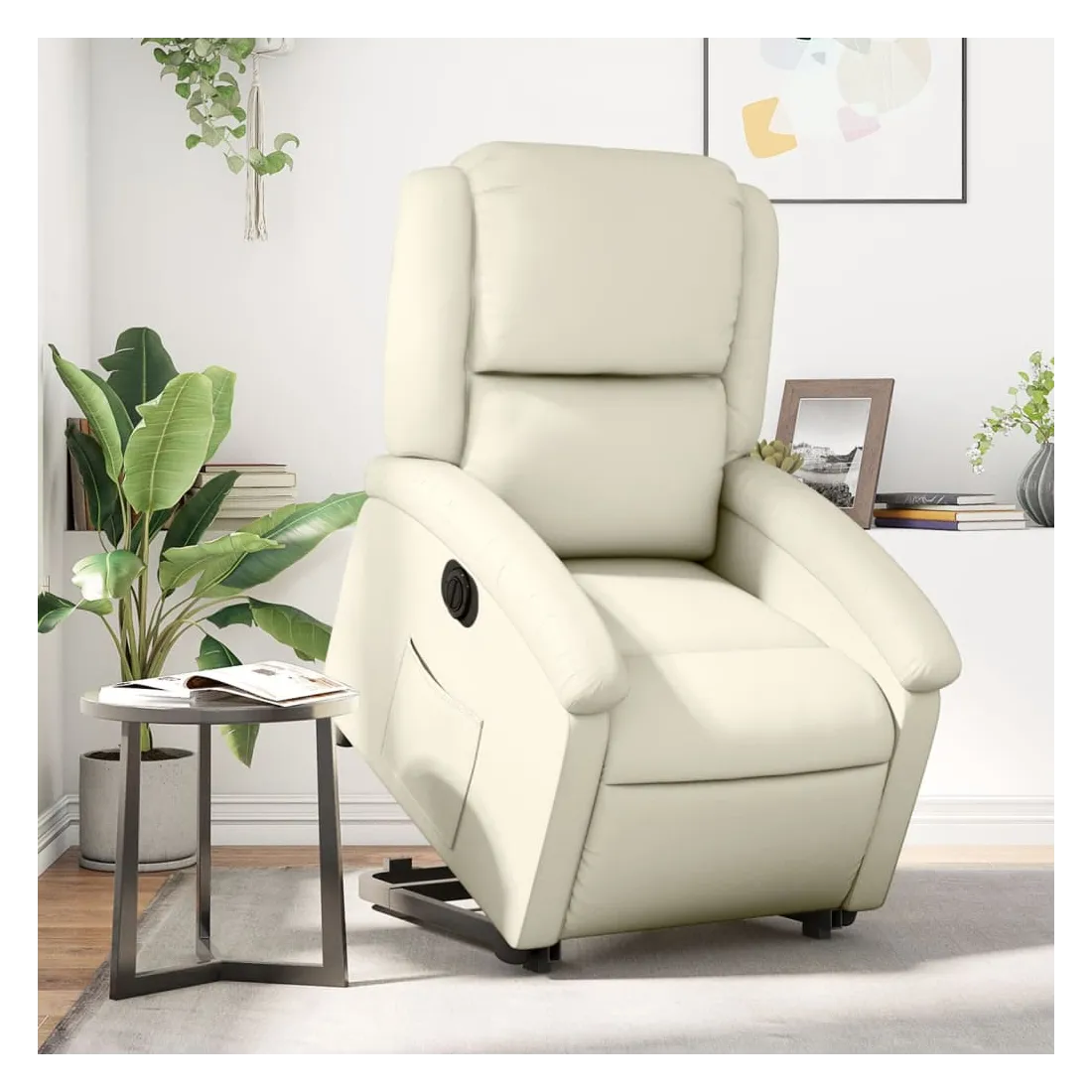 Asseyez-vous et détendez-vous dans ce fauteuil inclinable électrique très confortable ! Fonction de levage électrique : ce fauteuil inclinable pour personnes âgées est équipé d'un moteur électrique pour la fonction de levage. Grâce à la fonction qui pousse toute la chaise vers le haut, vous pouvez facilement vous tenir debout sans stresser votre dos et vos genoux en appuyant simplement sur le bouton.Fonction d'inclinaison électrique : ce fauteuil inclinable est également équipé d'un moteur électrique qui permet de régler automatiquement le repose-pied et le dossier dans n'importe quelle position, selon votre confort, en appuyant simplement sur le bouton situé sur le côté du fauteuil. Cette fonction permet une inclinaison maximale de 135 degrés. En outre, le dossier peut revenir automatiquement à sa position d'origine par une simple pression sur le bouton.Expérience de siège confortable : le siège, le dossier et les larges accoudoirs rembourrés épais recouverts de similicuir procurent une sensation confortable, vous faisant vous sentir enlacé lorsque vous êtes assis. Le similicuir est un matériau très résistant. Il est résistant aux taches, ce qui le rend facile à nettoyer avec un chiffon humide. La surface lisse donne également un aspect luxueux et la beauté du cuir véritable.Poche latérale pratique : ce fauteuil est doté d'une poche latérale pour vous permettre de garder vos objets essentiels à portée de main.Cadre solide et stable : le cadre en bois et en métal offre une structure solide et une grande stabilité. Ce fauteuil inclinable est confortable et durable.