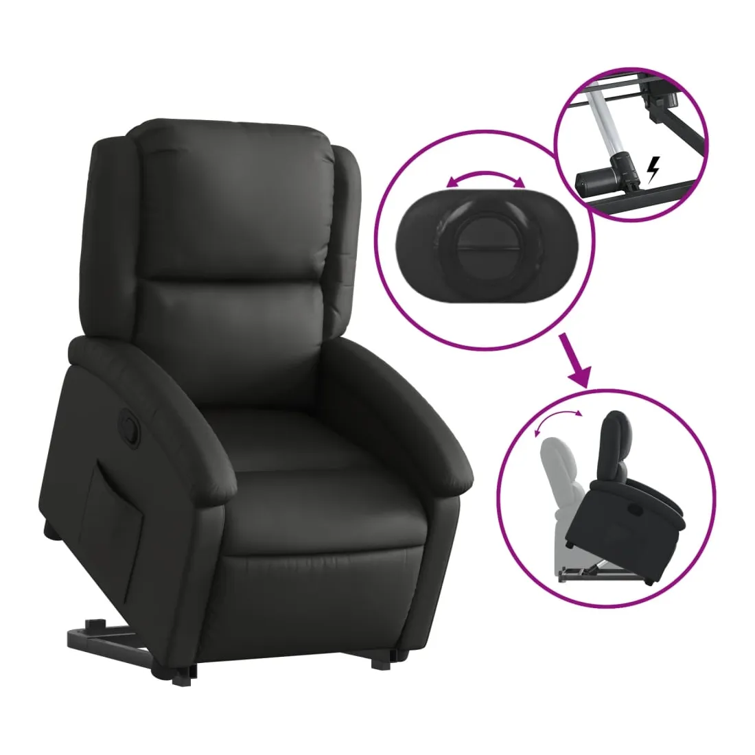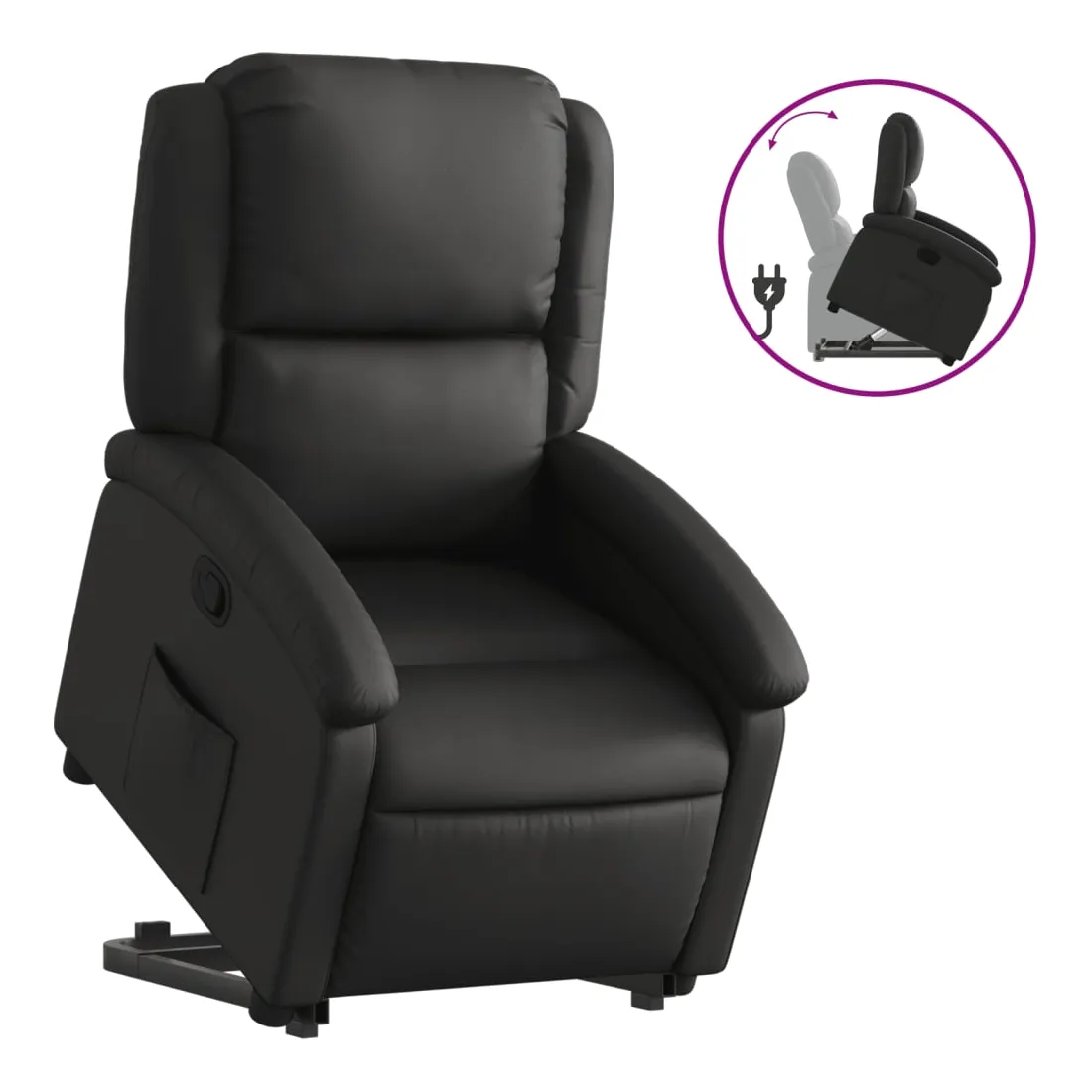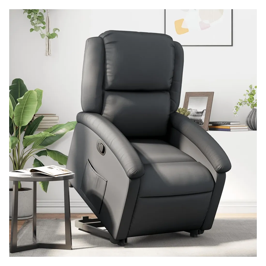 Asseyez-vous et détendez-vous dans ce fauteuil inclinable très confortable ! Fonction de levage électrique : ce fauteuil inclinable pour personnes âgées est équipé d'un moteur électrique pour la fonction de levage. Grâce à la fonction qui pousse toute la chaise vers le haut, vous pouvez facilement vous tenir debout sans stresser votre dos et vos genoux en appuyant simplement sur le bouton.Fonction d'inclinaison manuelle : ce fauteuil inclinable est doté d'une poignée du côté droit. Vous pouvez régler manuellement le repose-pieds et le dossier dans n'importe quelle position selon votre confort en tirant simplement sur la poignée. Cette fonction permet une inclinaison maximale de 135 degrés. De plus, le dossier peut revenir rapidement à sa position d'origine en tirant simplement sur la poignée.Expérience de siège confortable : le siège, le dossier et les larges accoudoirs rembourrés épais recouverts de cuir véritable procurent une sensation confortable et chaleureuse, vous faisant vous sentir enlacé lorsque vous êtes assis. Le cuir véritable est un matériau naturellement intemporel. Il peut durer toute une vie avec des soins et un entretien appropriés. La surface lisse lui donne également un aspect élégant tout en garantissant un confort optimal.Poche latérale pratique : ce fauteuil est doté d'une poche latérale pour vous permettre de garder vos objets essentiels à portée de main.Cadre solide et stable : le cadre en bois et en métal offre une structure solide et une grande stabilité. Ce fauteuil inclinable est confortable et durable.