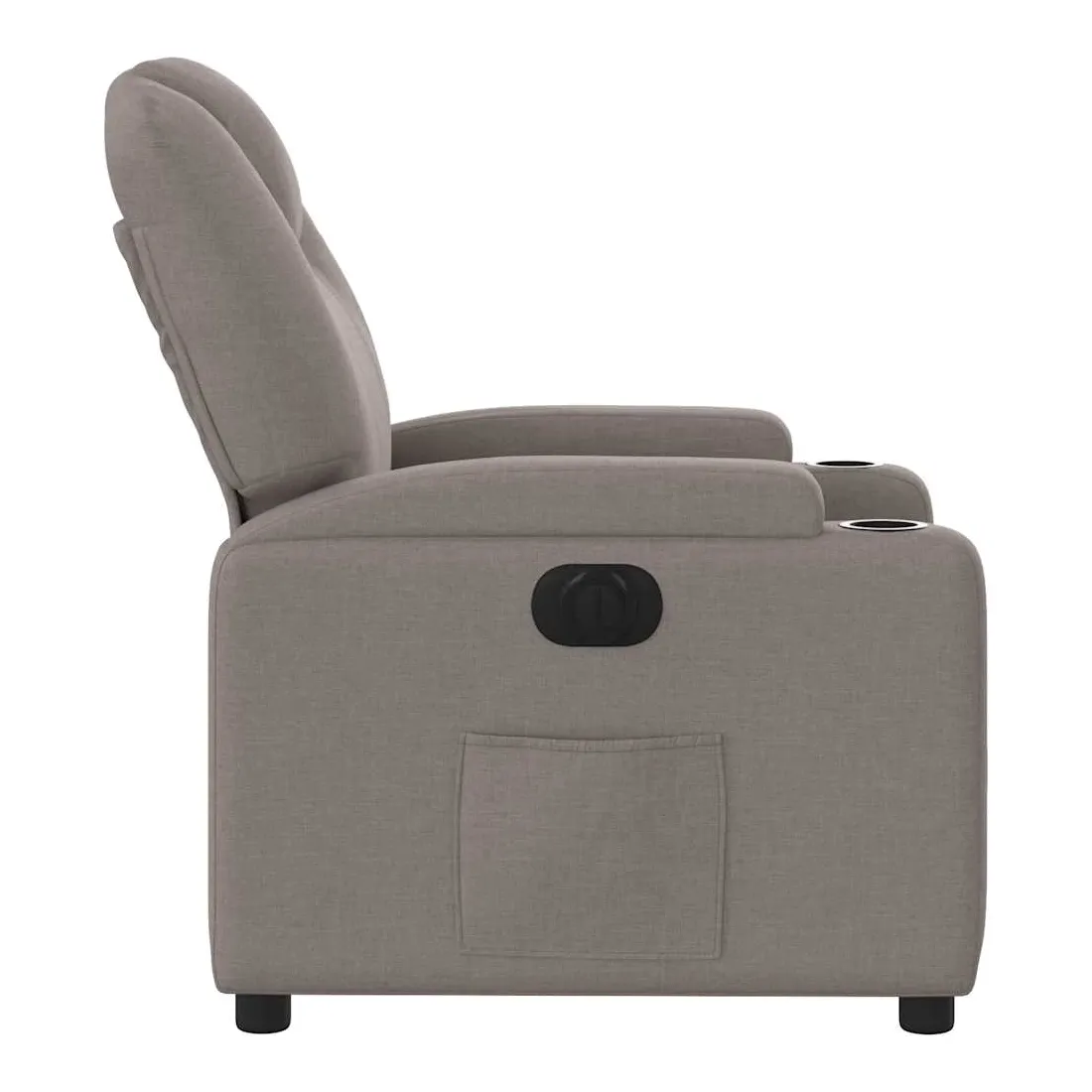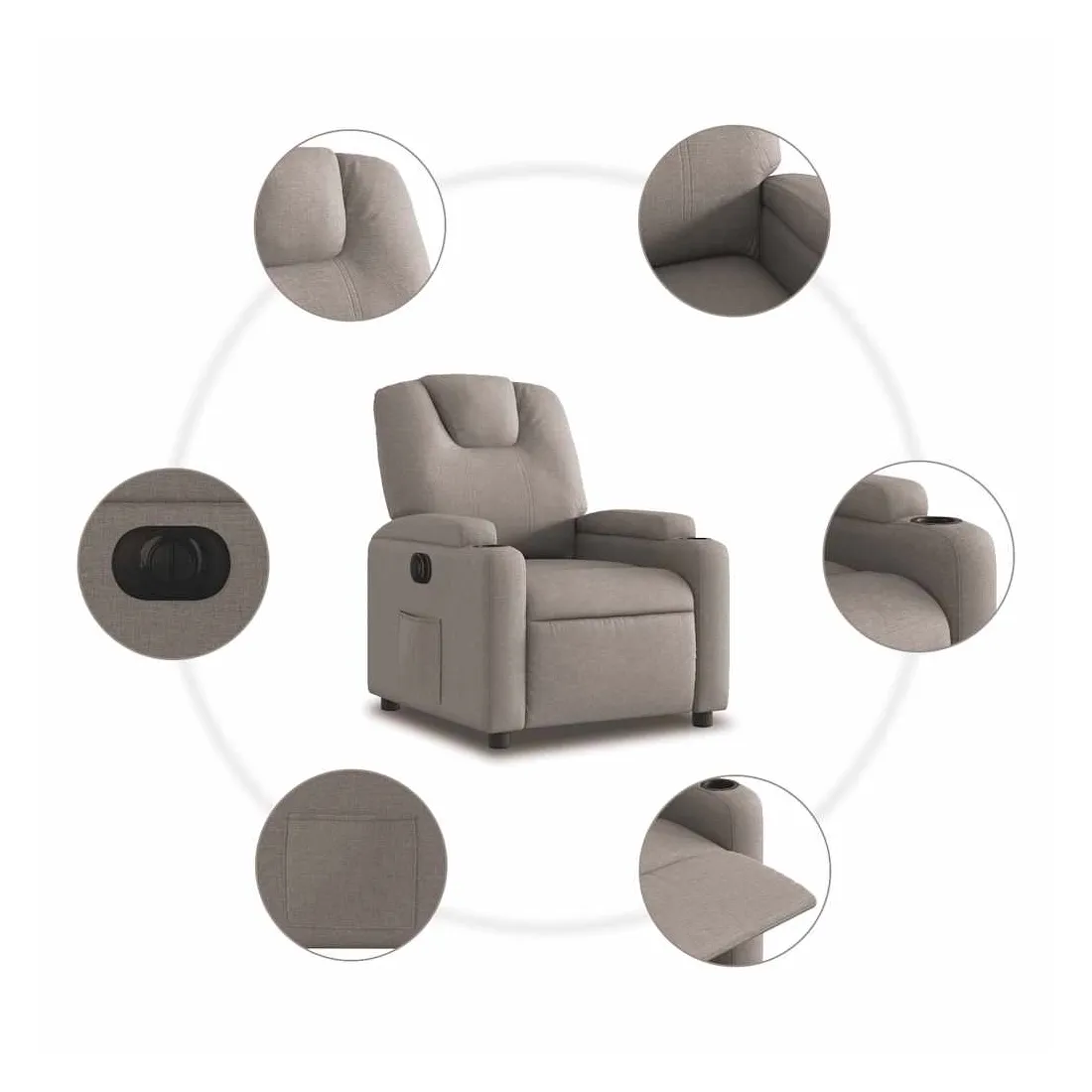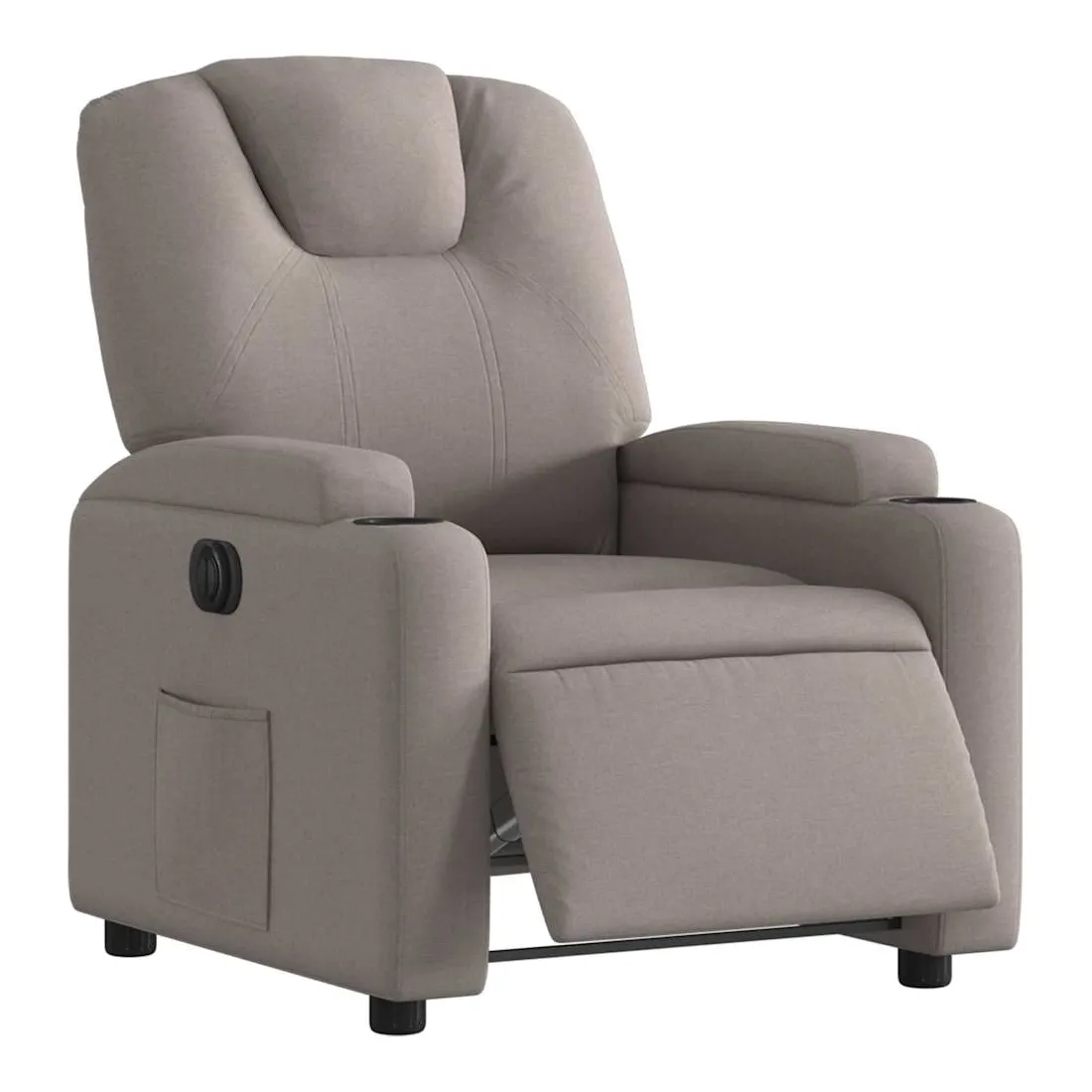 Asseyez-vous et détendez-vous dans ce fauteuil inclinable électrique très confortable ! Fonction d'inclinaison électrique : ce fauteuil inclinable est équipé d'un moteur électrique qui permet de régler automatiquement le repose-pied et le dossier dans n'importe quelle position, selon votre confort, en appuyant simplement sur le bouton situé sur le côté du fauteuil. Cette fonction permet une inclinaison maximale de 135 degrés. En outre, le dossier peut revenir automatiquement à sa position d'origine par une simple pression sur le bouton.Expérience d'assise confortable : le siège, le dossier et les larges accoudoirs bien rembourrés recouverts de tissu procurent une sensation confortable et chaleureuse, vous permettant de vous sentir enveloppé lorsque vous êtes assis. Le tissu présente un aspect simple et épuré et est respirant et durable.Porte-gobelets et poche latérale pratiques : ce fauteuil dispose de deux porte-gobelets pratiques pour vos boissons et d'une poche latérale pour garder vos objets essentiels à portée de main.Cadre solide et stable : le cadre en bois et en métal offre une structure solide et une grande stabilité. Ce fauteuil inclinable est confortable et durable.