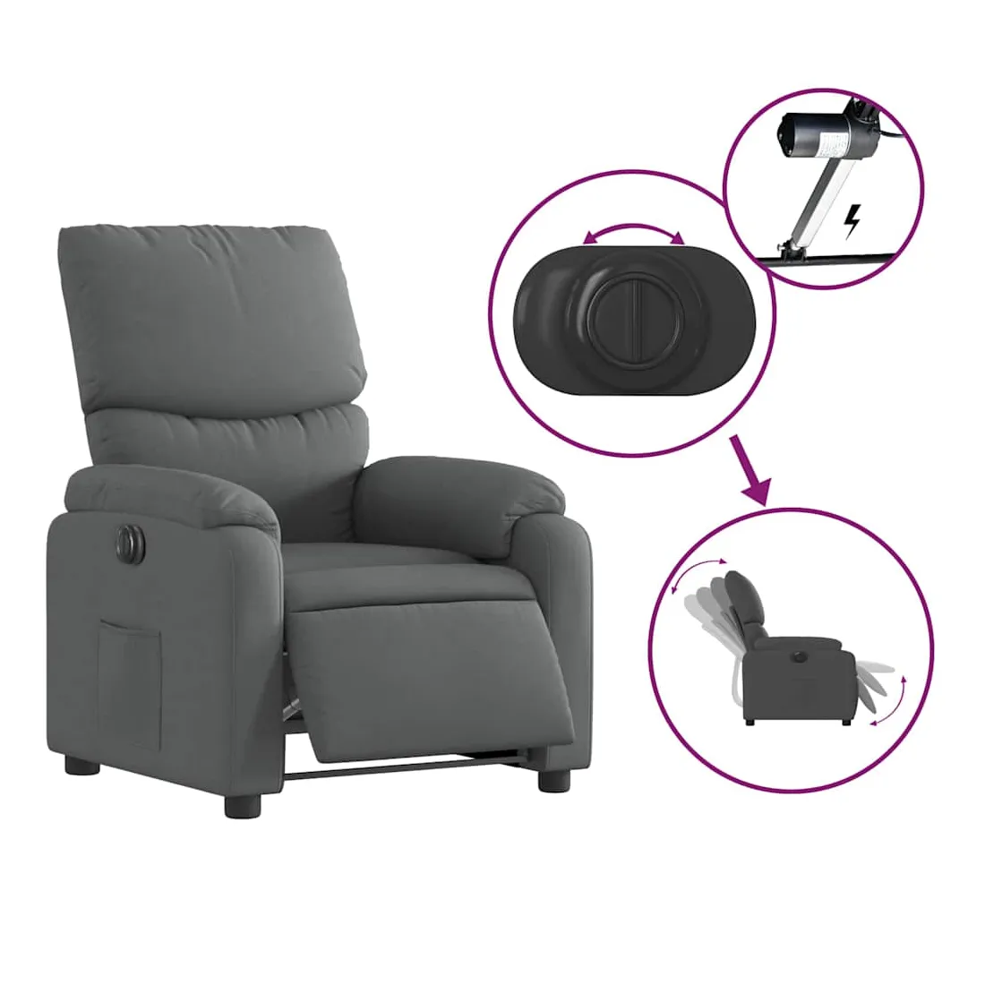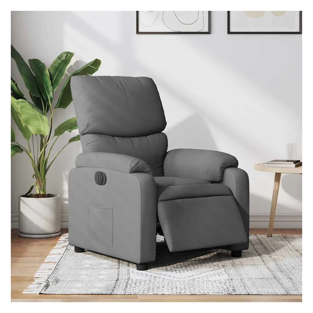 Asseyez-vous et détendez-vous dans ce fauteuil inclinable électrique très confortable ! Fonction d'inclinaison électrique : ce fauteuil inclinable est équipé d'un moteur électrique qui permet de régler automatiquement le repose-pied et le dossier dans n'importe quelle position, selon votre confort, en appuyant simplement sur le bouton situé sur le côté du fauteuil. Cette fonction permet une inclinaison maximale de 135 degrés. En outre, le dossier peut revenir automatiquement à sa position d'origine par une simple pression sur le bouton.Expérience d'assise confortable : le siège, le dossier et les larges accoudoirs bien rembourrés recouverts de tissu procurent une sensation confortable et chaleureuse, vous permettant de vous sentir enveloppé lorsque vous êtes assis. Le tissu présente un aspect simple et épuré et est respirant et durable.Poche latérale pratique : ce fauteuil est doté d'une poche latérale pour vous permettre de garder vos objets essentiels à portée de main.Cadre solide et stable : le cadre en bois et en métal offre une structure solide et une grande stabilité. Ce fauteuil inclinable est confortable et durable.