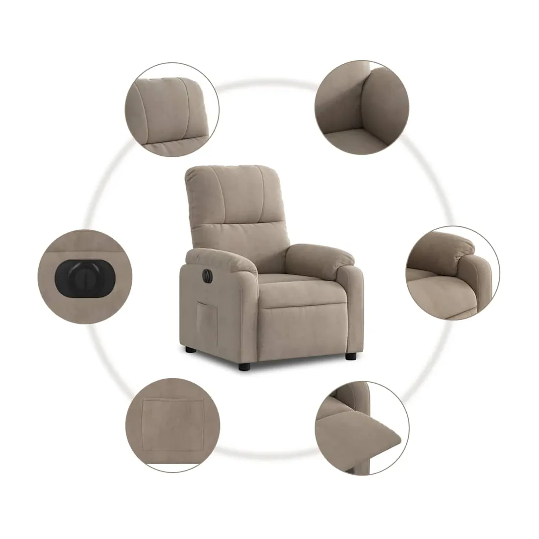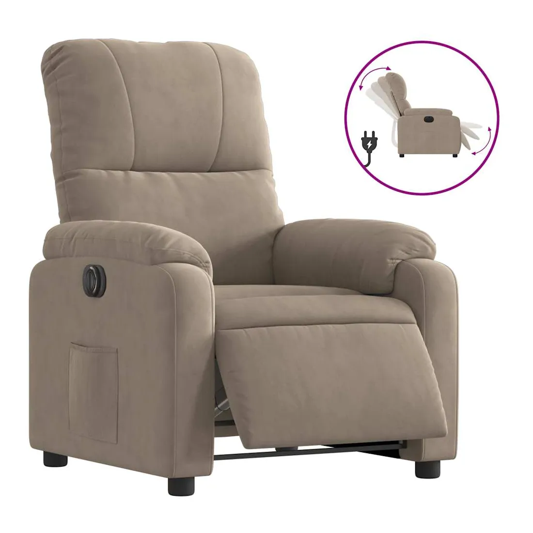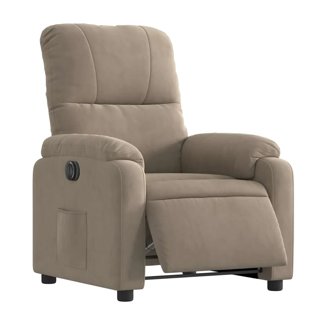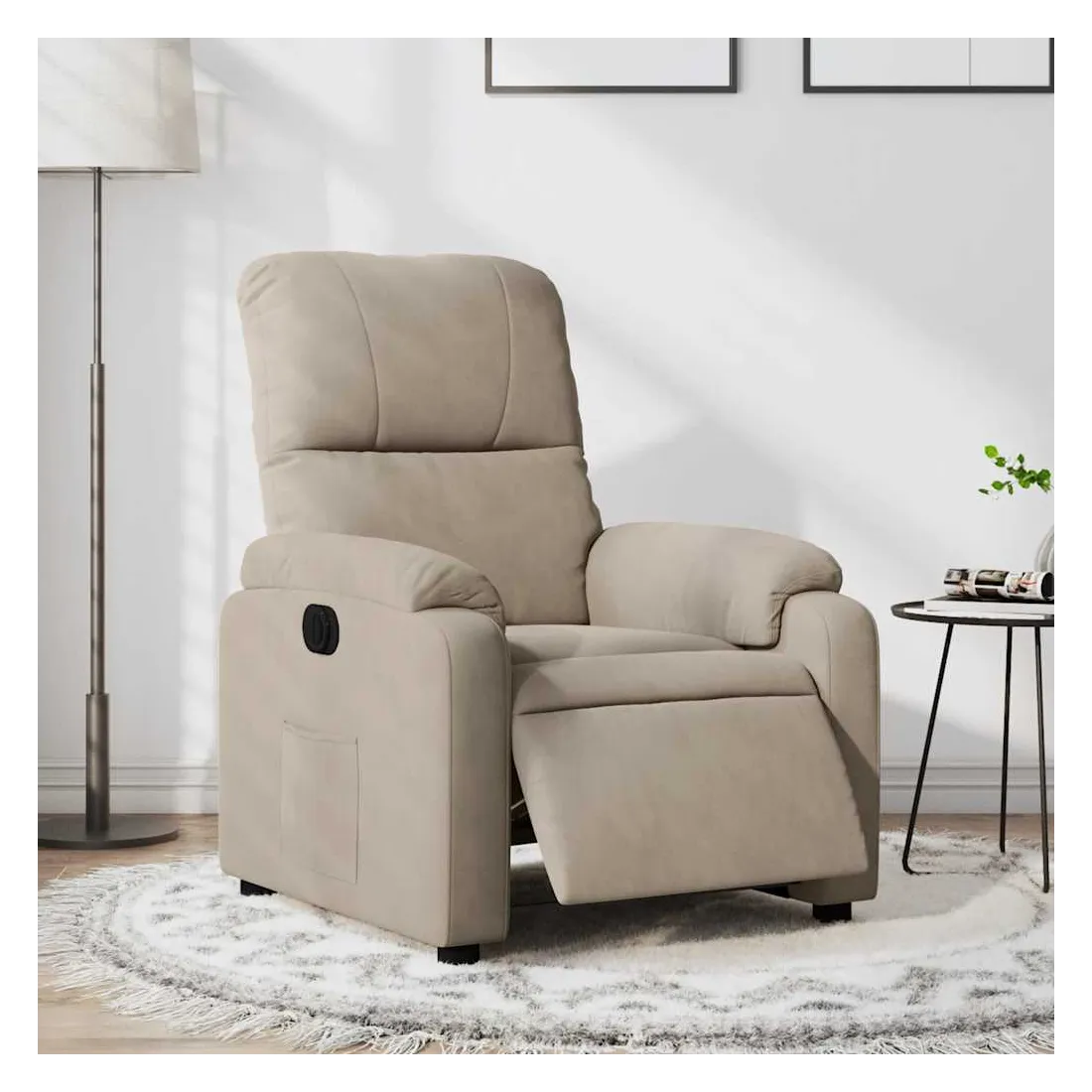 Asseyez-vous et détendez-vous dans ce fauteuil inclinable électrique très confortable ! Fonction d'inclinaison électrique : ce fauteuil inclinable est équipé d'un moteur électrique qui permet de régler automatiquement le repose-pied et le dossier dans n'importe quelle position, selon votre confort, en appuyant simplement sur le bouton situé sur le côté du fauteuil. Cette fonction permet une inclinaison maximale de 135 degrés. En outre, le dossier peut revenir automatiquement à sa position d'origine par une simple pression sur le bouton.Expérience d'assise confortable : l'assise, le dossier et les larges accoudoirs recouverts de microfibres et dotés d'un rembourrage épais procurent une sensation de confort et de chaleur, vous permettant de vous sentir enveloppé lorsque vous êtes assis. La microfibre est un tissu synthétique composé de fibres ultrafines, particulièrement imperméables aux taches. La microfibre est un excellent choix pour le revêtement des meubles en raison de sa durabilité et de sa facilité d'entretien.Poche latérale pratique : ce fauteuil est doté d'une poche latérale pour vous permettre de garder vos objets essentiels à portée de main.Cadre solide et stable : le cadre en bois et en métal offre une structure solide et une grande stabilité. Ce fauteuil inclinable est confortable et durable.
