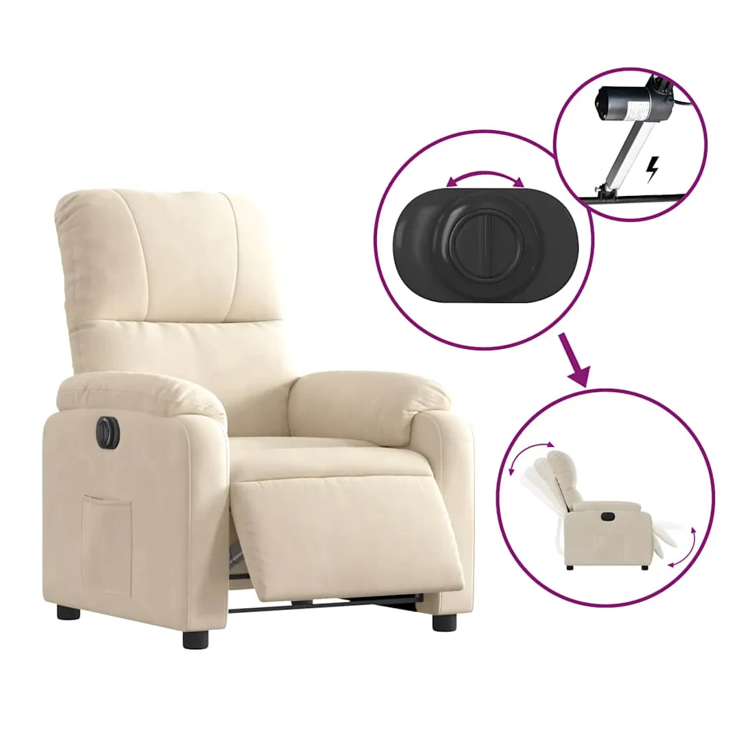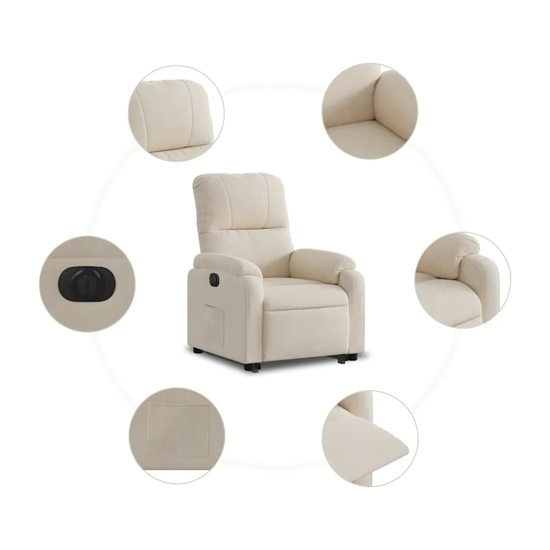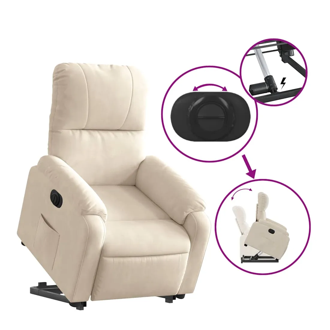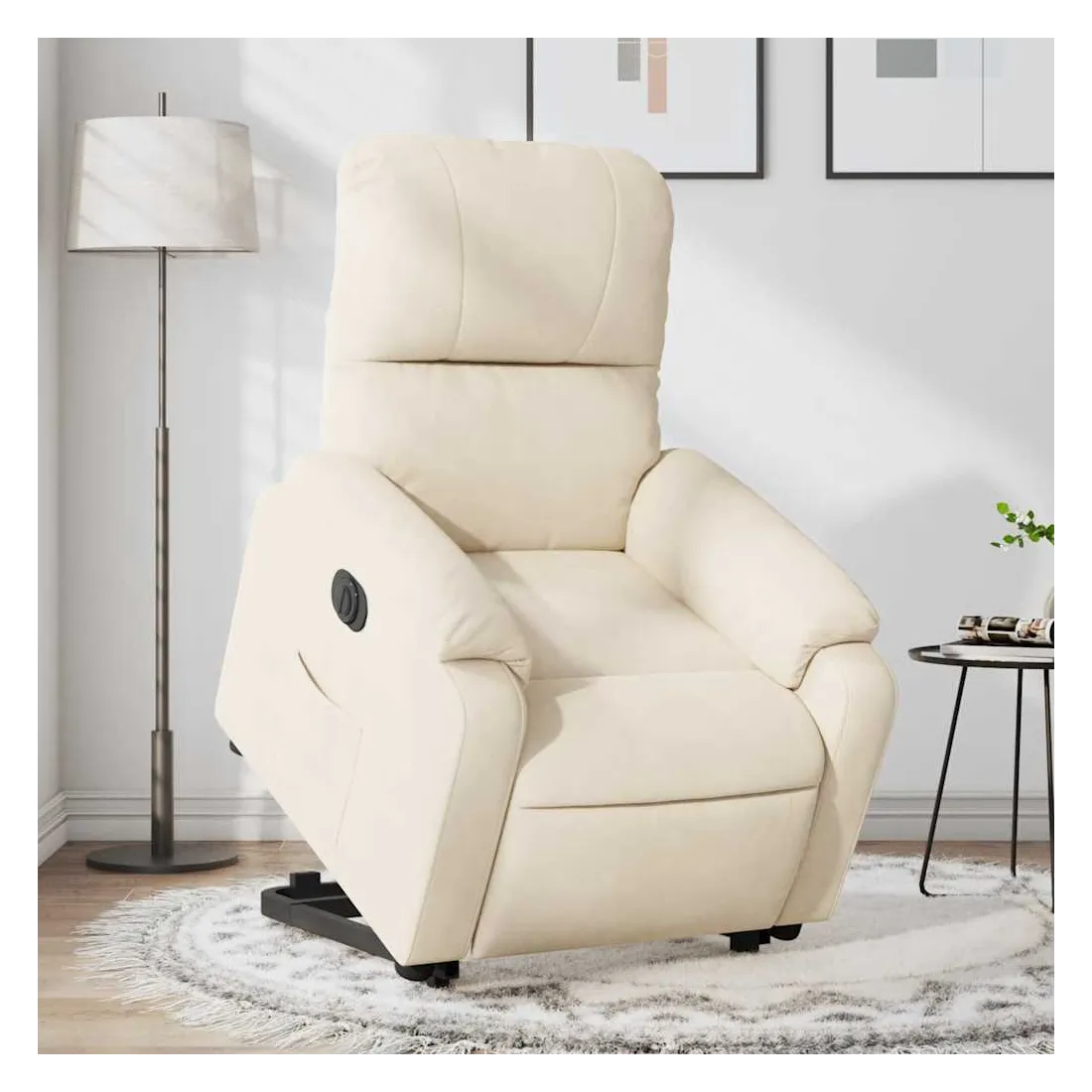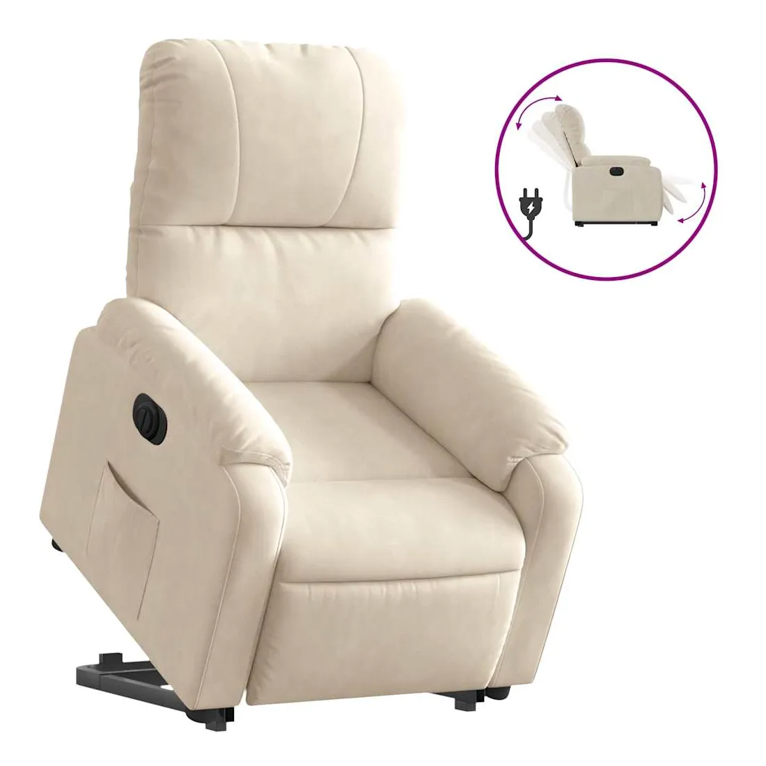 Asseyez-vous et détendez-vous dans ce fauteuil inclinable électrique très confortable ! Fonction de levage électrique : ce fauteuil inclinable pour personnes âgées est équipé d'un moteur électrique pour la fonction de levage. Grâce à la fonction qui pousse toute la chaise vers le haut, vous pouvez facilement vous tenir debout sans stresser votre dos et vos genoux en appuyant simplement sur le bouton.Fonction d'inclinaison électrique : ce fauteuil inclinable est également équipé d'un moteur électrique qui permet de régler automatiquement le repose-pied et le dossier dans n'importe quelle position, selon votre confort, en appuyant simplement sur le bouton situé sur le côté du fauteuil. Cette fonction permet une inclinaison maximale de 135 degrés. En outre, le dossier peut revenir automatiquement à sa position d'origine par une simple pression sur le bouton.Expérience d'assise confortable : l'assise, le dossier et les larges accoudoirs recouverts de microfibres et dotés d'un rembourrage épais procurent une sensation de confort et de chaleur, vous permettant de vous sentir enveloppé lorsque vous êtes assis. La microfibre est un tissu synthétique composé de fibres ultrafines, particulièrement imperméables aux taches. La microfibre est un excellent choix pour le revêtement des meubles en raison de sa durabilité et de sa facilité d'entretien.Poche latérale pratique : ce fauteuil est doté d'une poche latérale pour vous permettre de garder vos objets essentiels à portée de main.Cadre solide et stable : le cadre en bois et en métal offre une structure solide et une grande stabilité. Ce fauteuil inclinable est confortable et durable.