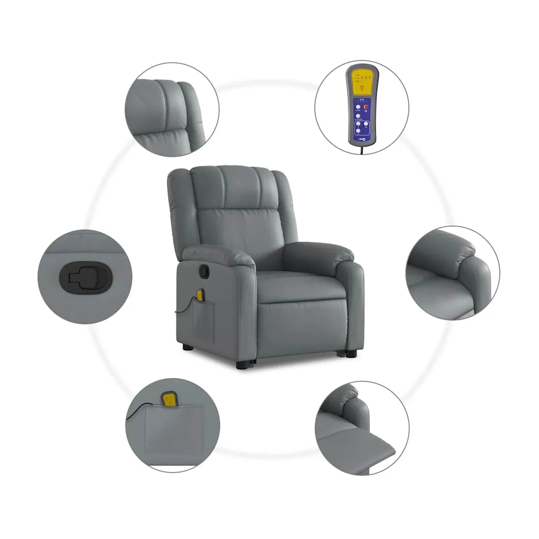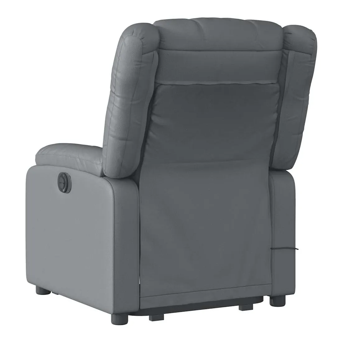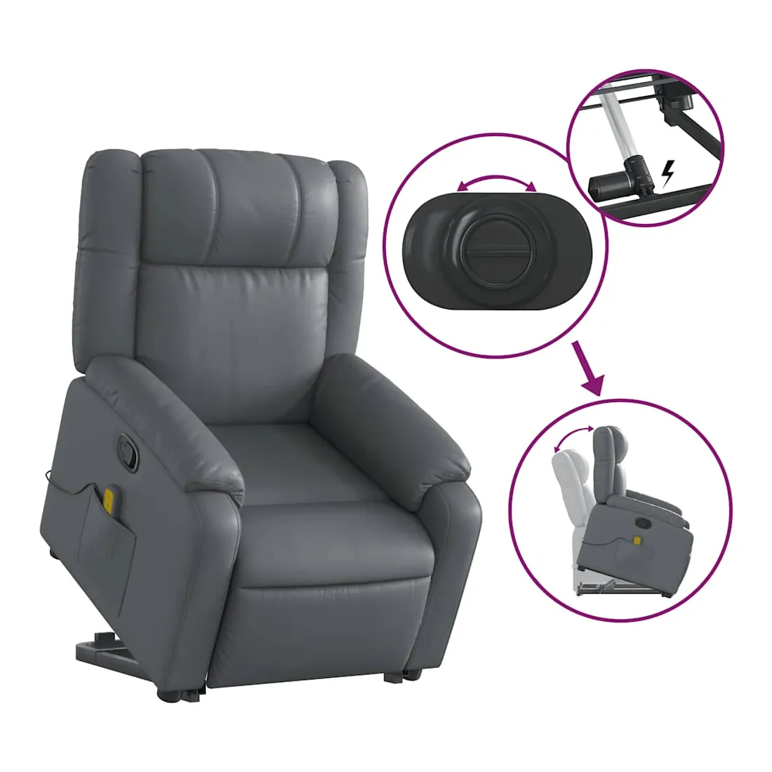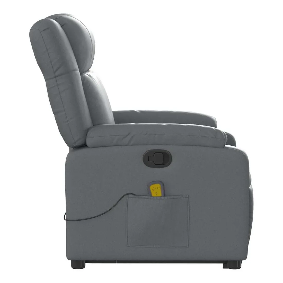 Asseyez-vous et détendez-vous dans ce fauteuil inclinable de massage très confortable ! Fonction de levage électrique : ce fauteuil inclinable pour personnes âgées est équipé d'un moteur électrique pour la fonction de levage. Grâce à la fonction qui pousse toute la chaise vers le haut, vous pouvez facilement vous tenir debout sans stresser votre dos et vos genoux en appuyant simplement sur le bouton.Fonction d'inclinaison manuelle : ce fauteuil inclinable est doté d'une poignée du côté droit. Vous pouvez régler manuellement le repose-pieds et le dossier dans n'importe quelle position selon votre confort en tirant simplement sur la poignée. Cette fonction permet une inclinaison maximale de 135 degrés. De plus, le dossier peut revenir rapidement à sa position d'origine en tirant simplement sur la poignée.Fonction de vibration : les 6 points de massage vous permettent de faire l'expérience d'un massage mieux ciblé. De plus, la télécommande incluse vous permet de choisir différents programmes de massage. La fonction de massage est alimentée par le connecteur USB qui nécessite une source d'alimentation USB certifiée de 5 V (non fournie).Expérience de siège confortable : le siège, le dossier et les larges accoudoirs rembourrés épais recouverts de similicuir procurent une sensation confortable et chaleureuse, vous faisant vous sentir enlacé lorsque vous êtes assis. Le simili cuir est un matériau très résistant. Il est résistant aux taches, ce qui le rend facile à nettoyer avec un chiffon humide. La surface lisse donne également un aspect luxueux et la beauté du cuir véritable.Poche latérale pratique : ce fauteuil est doté d'une poche latérale pour ranger votre télécommande ou garder vos objets essentiels à portée de main.Cadre solide et stable : le cadre en bois et en métal offre une structure solide et une grande stabilité. Ce fauteuil inclinable est confortable et durable.