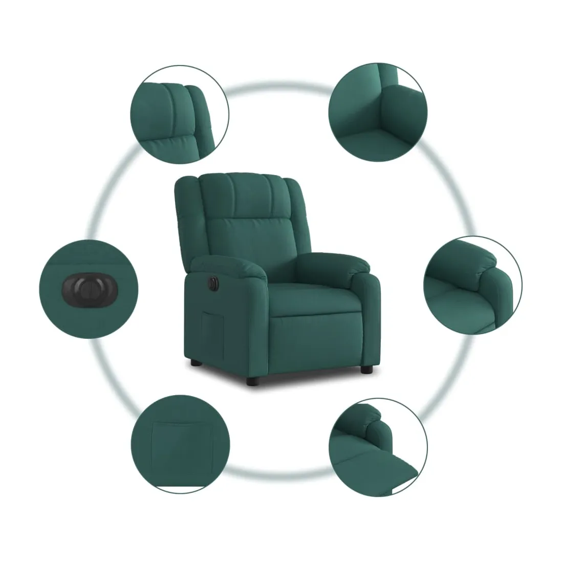 Asseyez-vous et détendez-vous dans ce fauteuil inclinable électrique très confortable ! Fonction d'inclinaison électrique : ce fauteuil inclinable est équipé d'un moteur électrique qui permet de régler automatiquement le repose-pied et le dossier dans n'importe quelle position, selon votre confort, en appuyant simplement sur le bouton situé sur le côté du fauteuil. Cette fonction permet une inclinaison maximale de 135 degrés. En outre, le dossier peut revenir automatiquement à sa position d'origine par une simple pression sur le bouton.Expérience d'assise confortable : le siège, le dossier et les larges accoudoirs bien rembourrés recouverts de tissu procurent une sensation confortable et chaleureuse, vous permettant de vous sentir enveloppé lorsque vous êtes assis. Le tissu présente un aspect simple et épuré et est respirant et durable.Poche latérale pratique : ce fauteuil est doté d'une poche latérale pour vous permettre de garder vos objets essentiels à portée de main.Cadre solide et stable : le cadre en bois et en métal offre une structure solide et une grande stabilité. Ce fauteuil inclinable est confortable et durable.