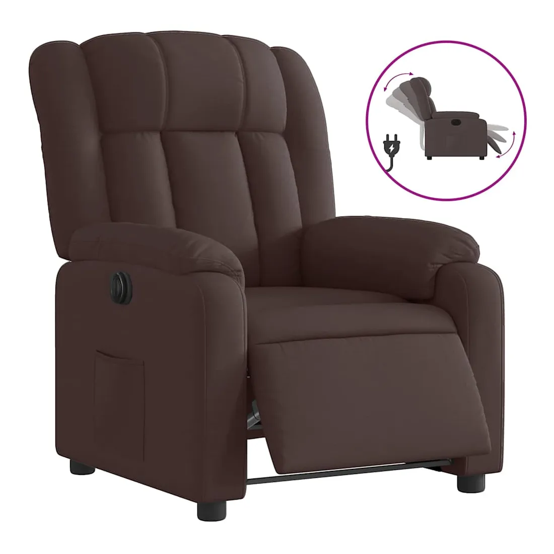 Asseyez-vous et détendez-vous dans ce fauteuil inclinable électrique très confortable ! Fonction d'inclinaison électrique : ce fauteuil inclinable est équipé d'un moteur électrique qui permet de régler automatiquement le repose-pied et le dossier dans n'importe quelle position, selon votre confort, en appuyant simplement sur le bouton situé sur le côté du fauteuil. Cette fonction permet une inclinaison maximale de 135 degrés. En outre, le dossier peut revenir automatiquement à sa position d'origine par une simple pression sur le bouton. Expérience d'assise confortable : le siège, le dossier et les larges accoudoirs bien rembourrés recouverts de tissu procurent une sensation confortable et chaleureuse, vous permettant de vous sentir enveloppé lorsque vous êtes assis. Le tissu présente un aspect simple et épuré et est respirant et durable. Poche latérale pratique : ce fauteuil est doté d'une poche latérale pour vous permettre de garder vos objets essentiels à portée de main. Cadre solide et stable : le cadre en bois et en métal offre une structure solide et une grande stabilité. Ce fauteuil inclinable est confortable et durable.