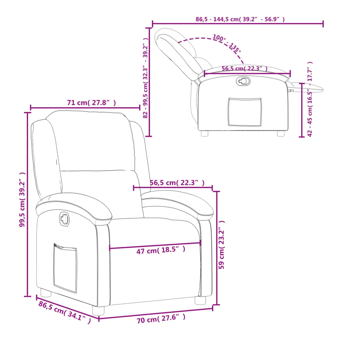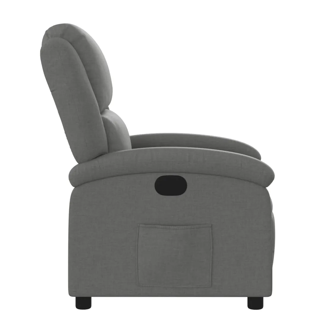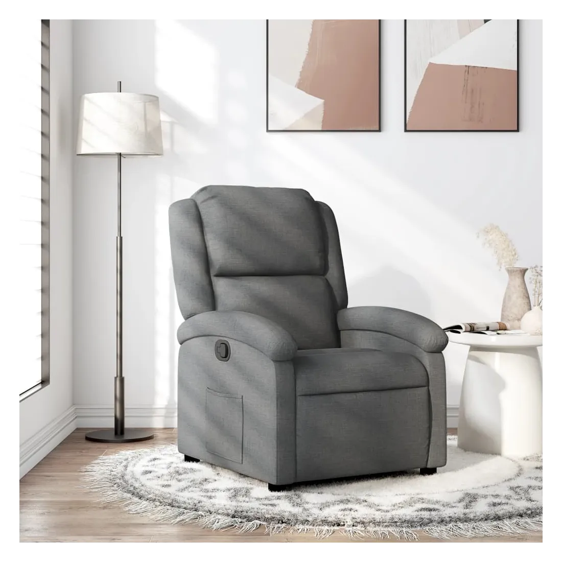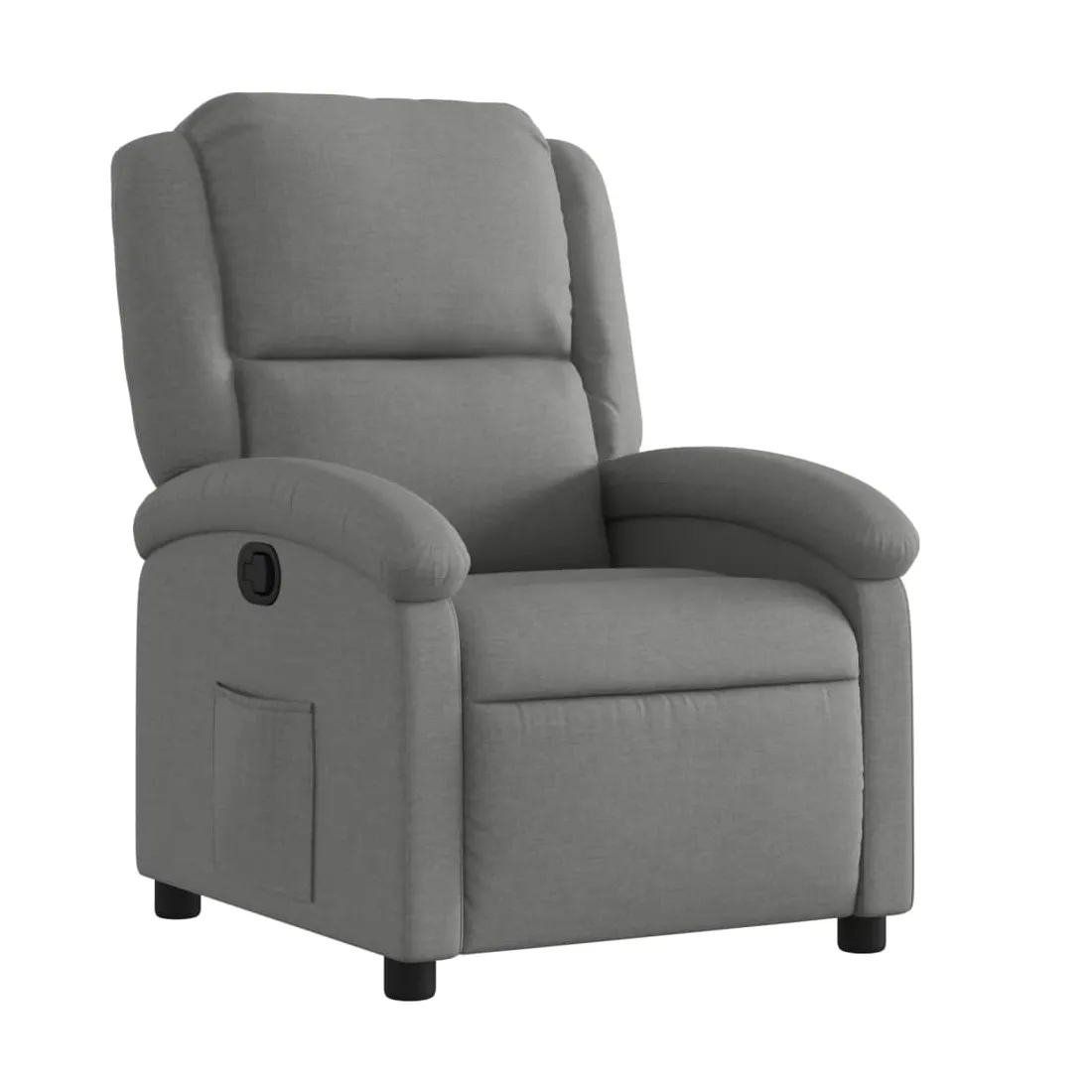 Asseyez-vous et détendez-vous dans ce fauteuil inclinable très confortable ! Fonction d'inclinaison manuelle : ce fauteuil inclinable est doté d'un bouton du côté droit. Vous pouvez régler manuellement le repose-pieds et le dossier dans n'importe quelle position selon votre confort en tirant simplement sur la poignée. Cette fonction permet une inclinaison maximale de 135 degrés. De plus, le dossier peut revenir rapidement à sa position d'origine en tirant simplement sur la poignée.Expérience d'assise confortable : le siège, le dossier et les larges accoudoirs bien rembourrés recouverts de tissu procurent une sensation confortable et chaleureuse, vous permettant de vous sentir enveloppé lorsque vous êtes assis. Le tissu présente un aspect simple et épuré et est respirant et durable.Poche latérale pratique : ce fauteuil est doté d'une poche latérale pour vous permettre de garder vos objets essentiels à portée de main.Cadre solide et stable : le cadre en bois et en métal offre une structure solide et une grande stabilité. Ce fauteuil inclinable est confortable et durable.